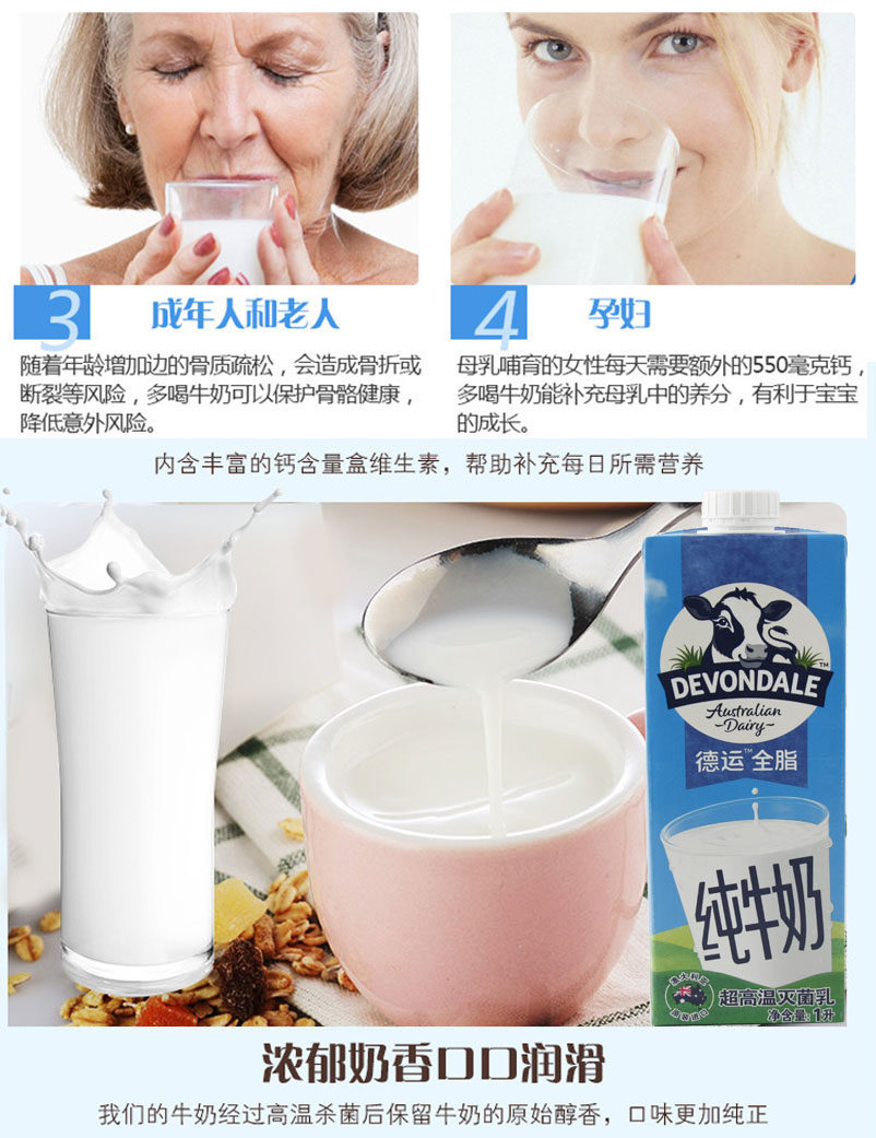 德运全脂澳洲进口纯牛奶整箱特价批发咖啡