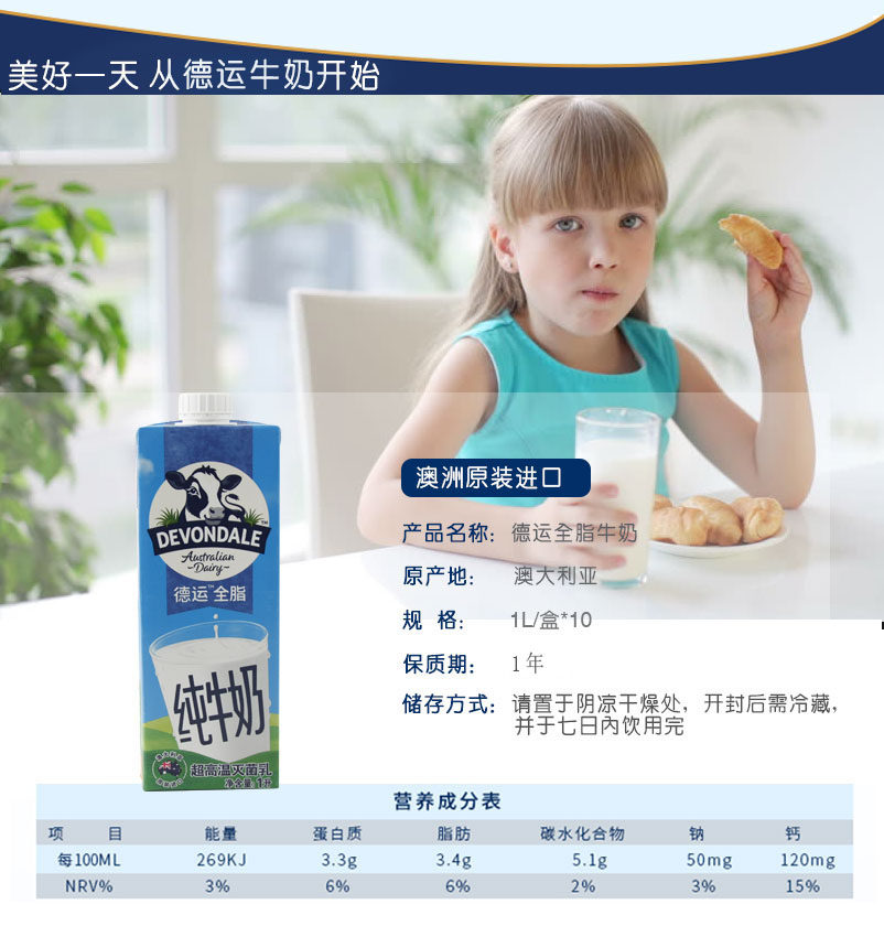 | devondale whole milk 1l(德运全脂牛奶1L) | USD $2.22 | 4 piece available |