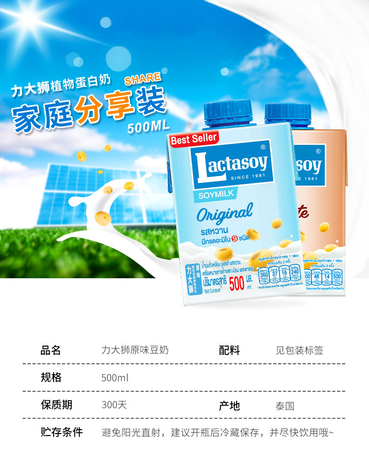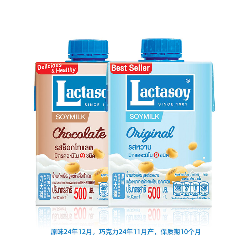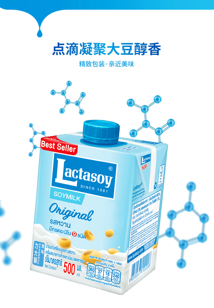 力大狮泰国进口儿童学生豆奶饮料整箱原味家庭装500ml年货