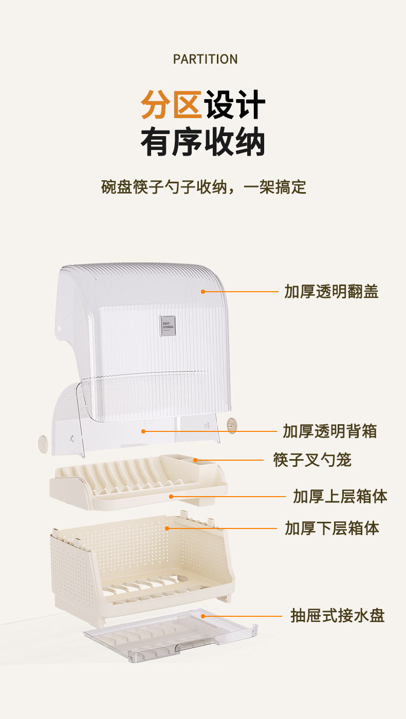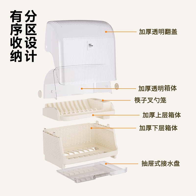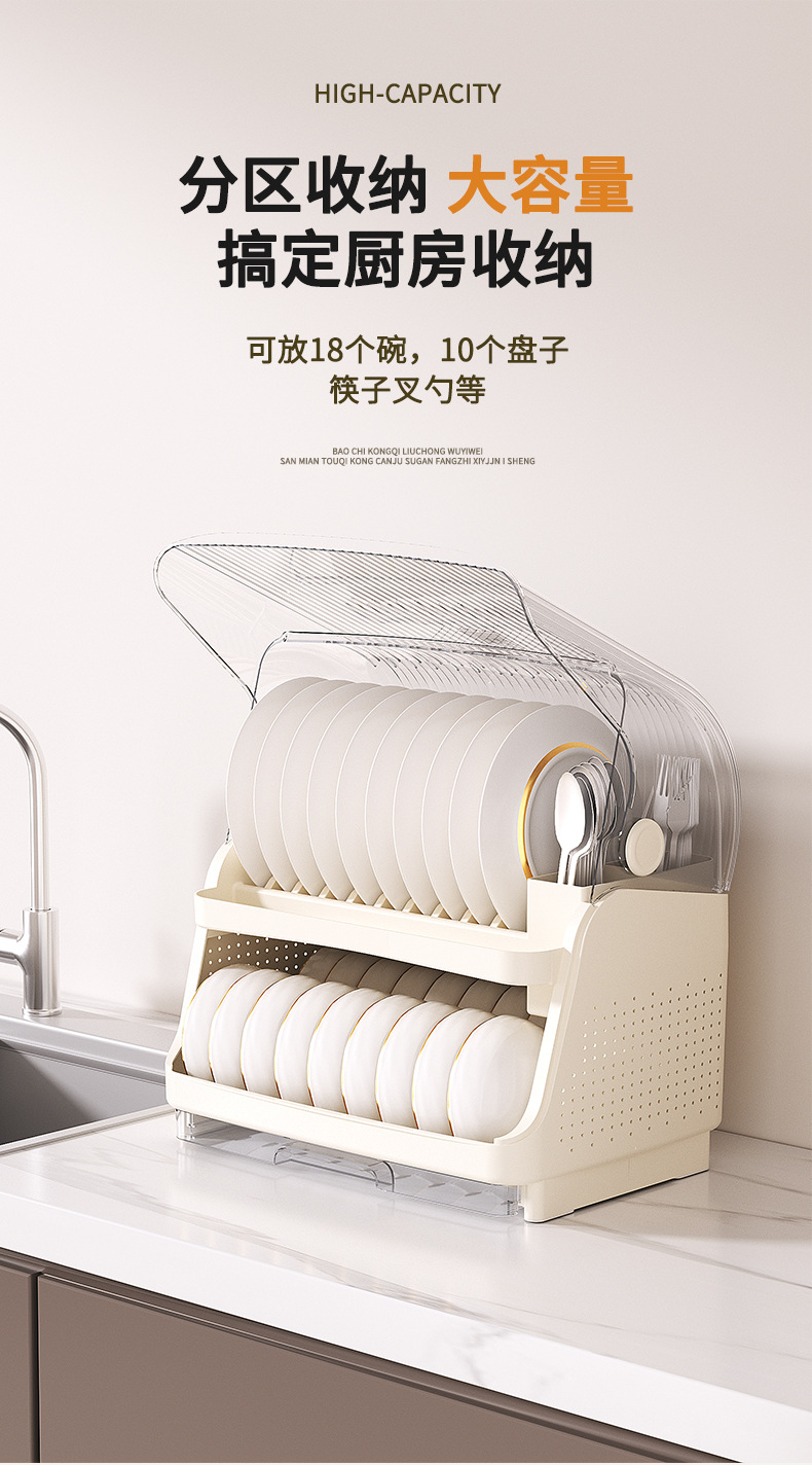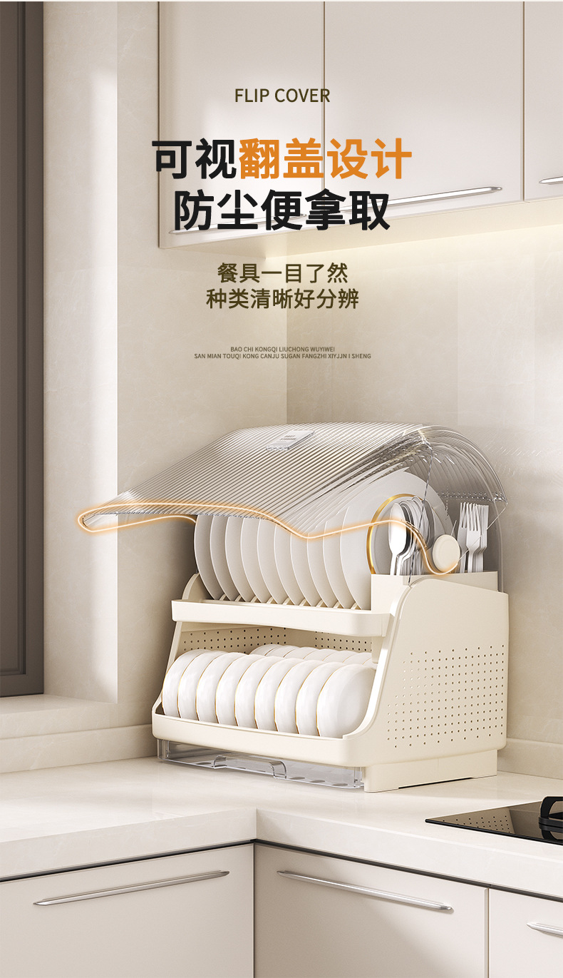 厨房置物架家用厨房台面多功能餐具碗筷收纳架碗架碗碟翻盖沥水架