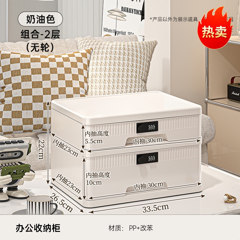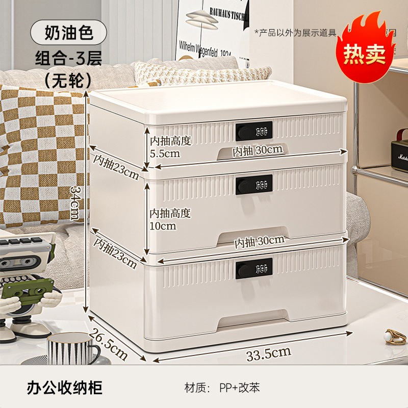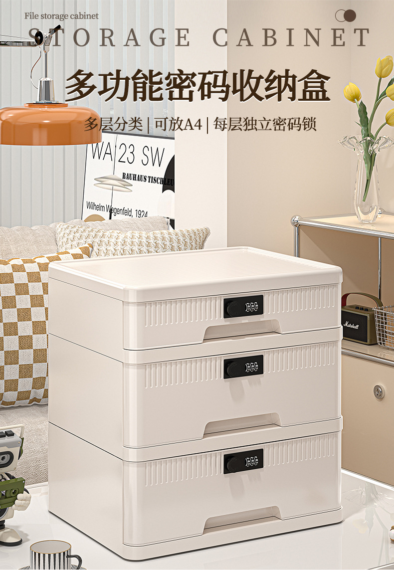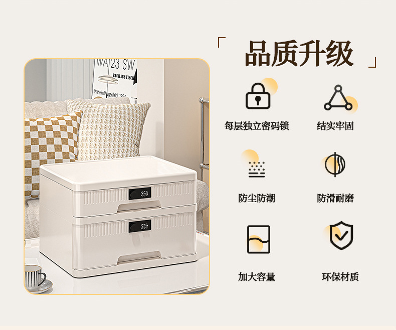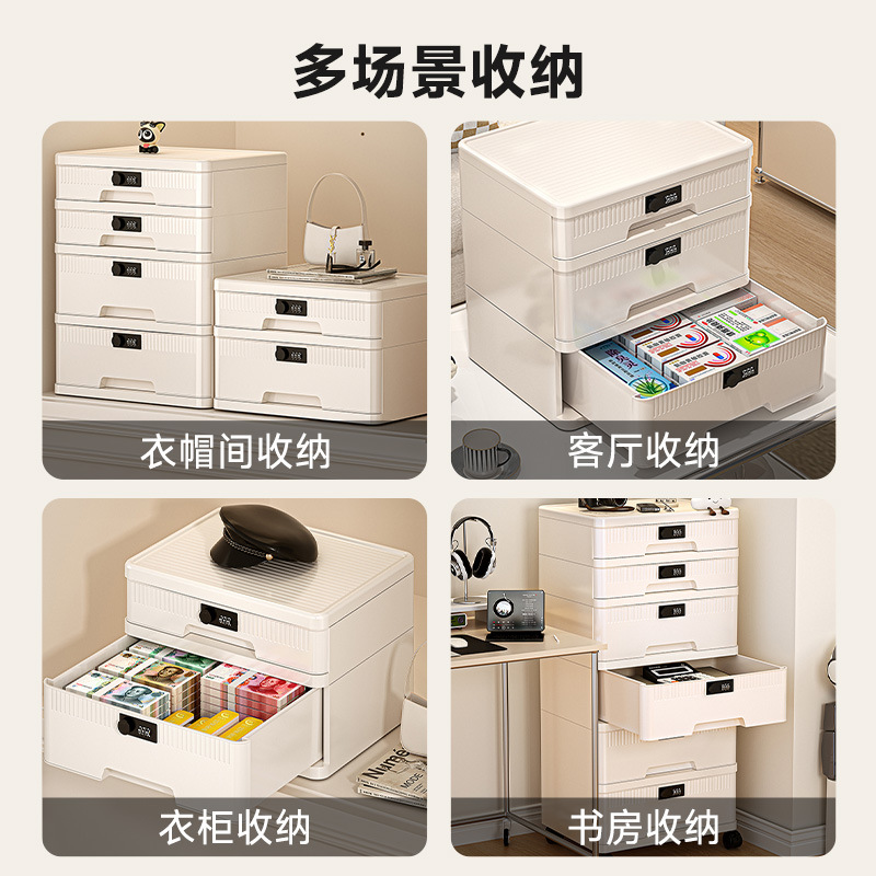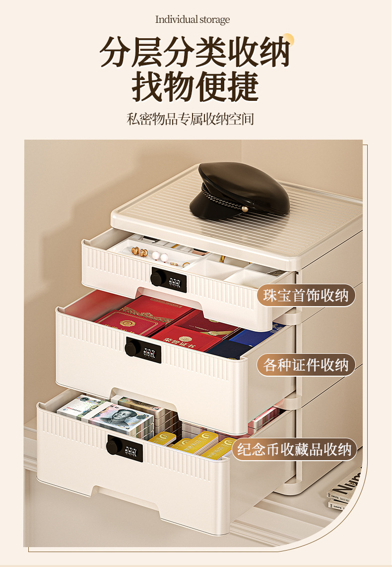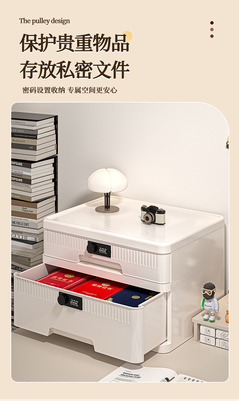 抽屉式收纳柜家用大容量带锁储物柜办公桌面桌下证件文件柜密码箱