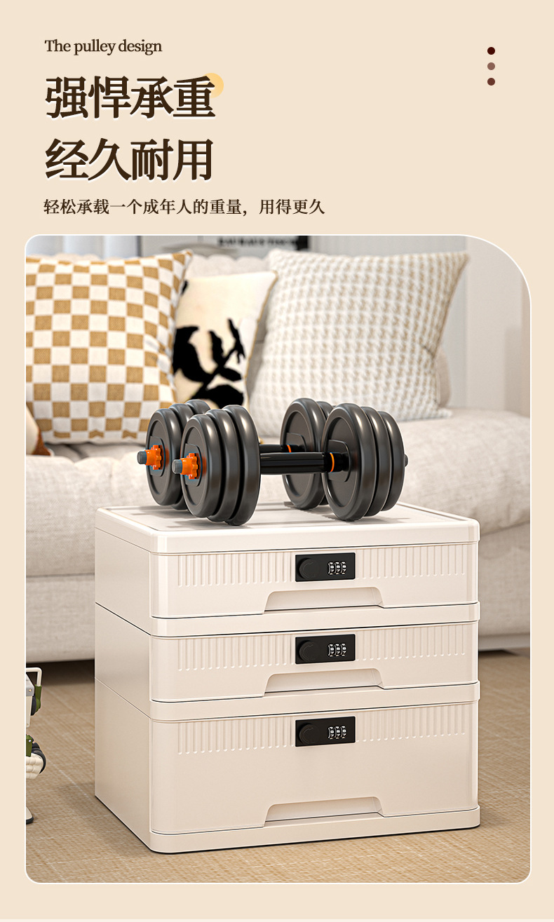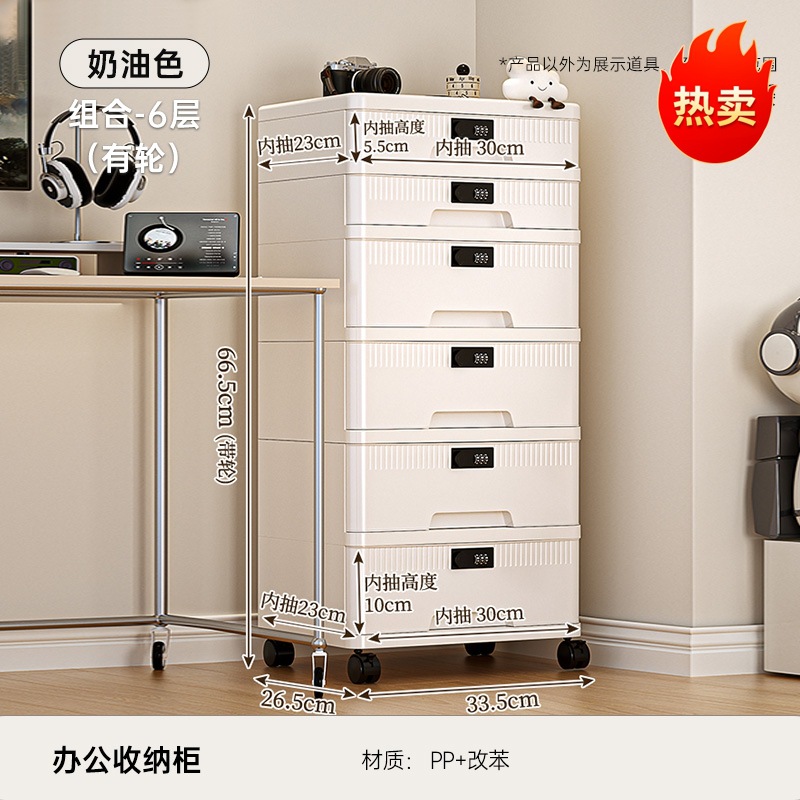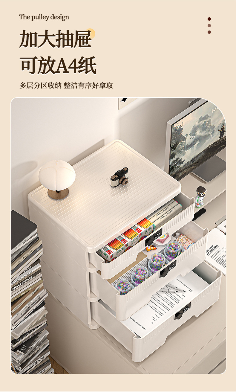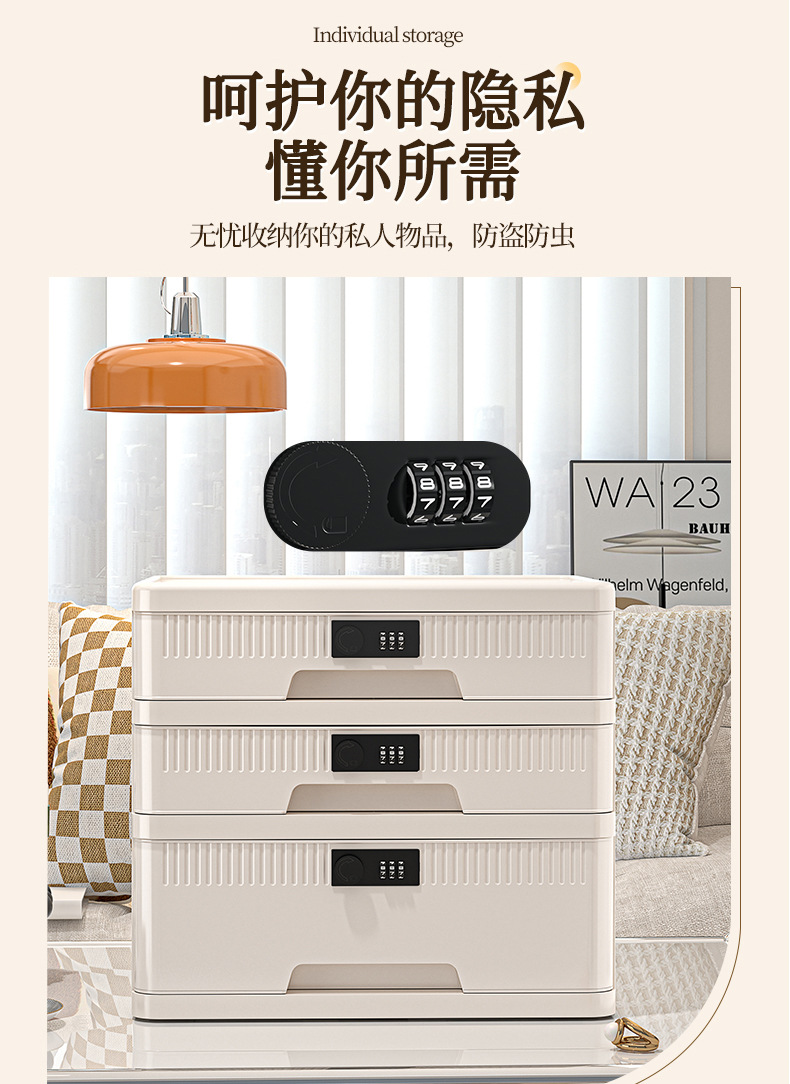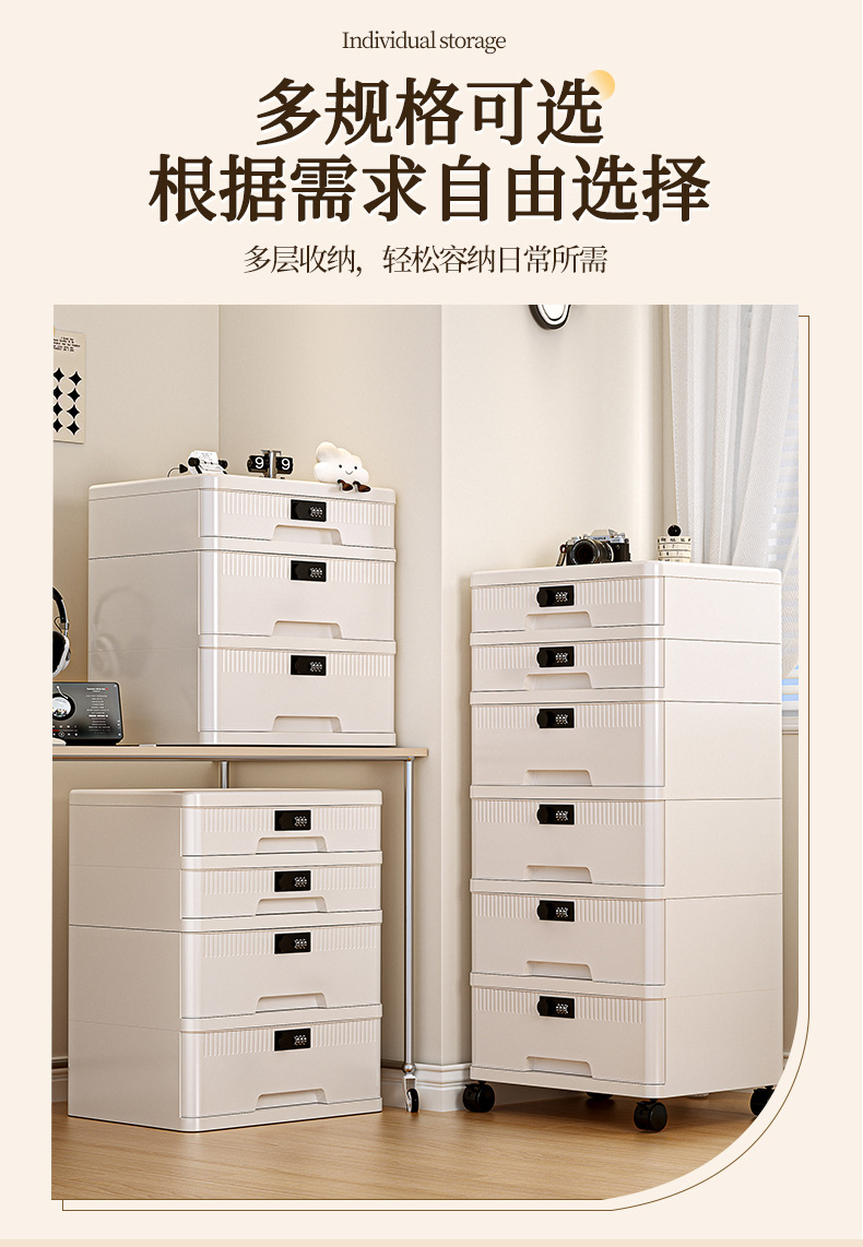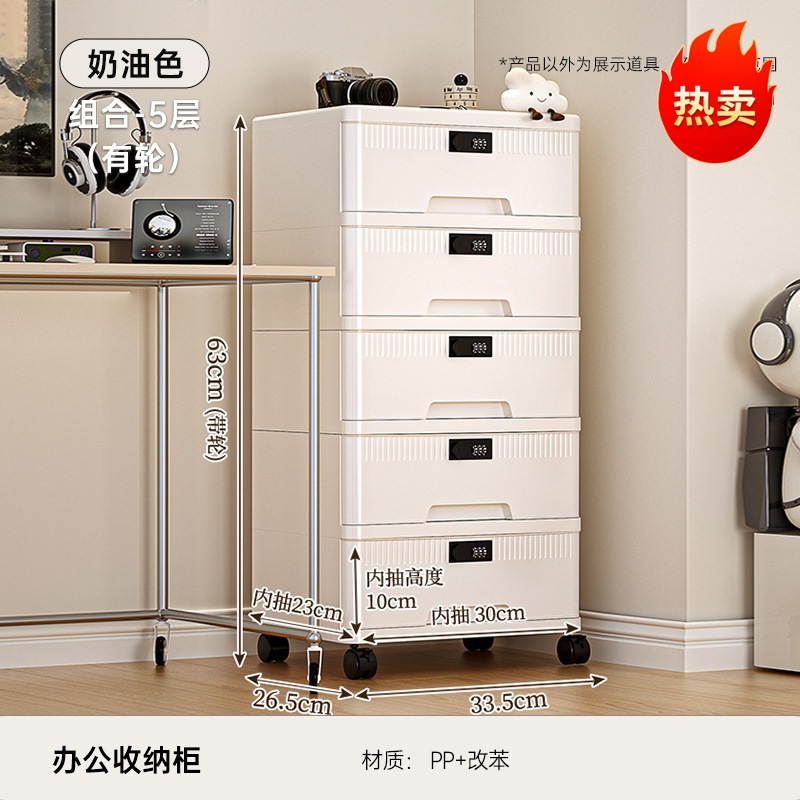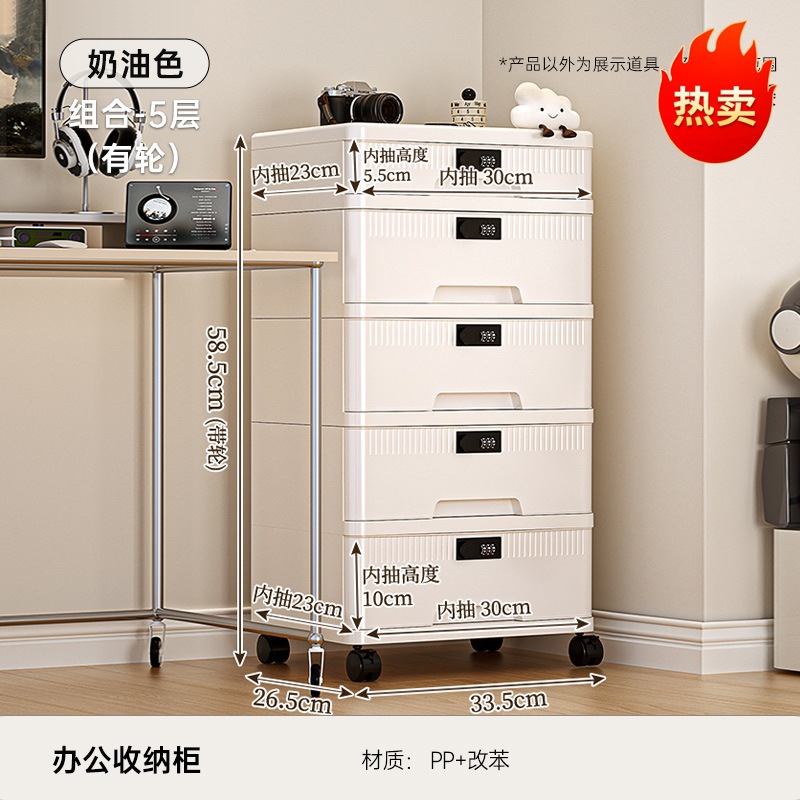 抽屉式收纳柜家用大容量带锁储物柜办公桌面桌下证件文件柜密码箱