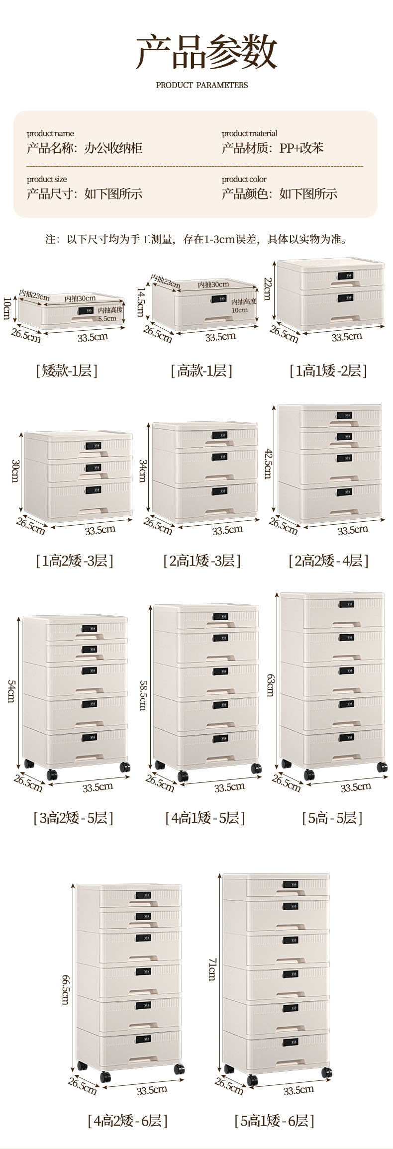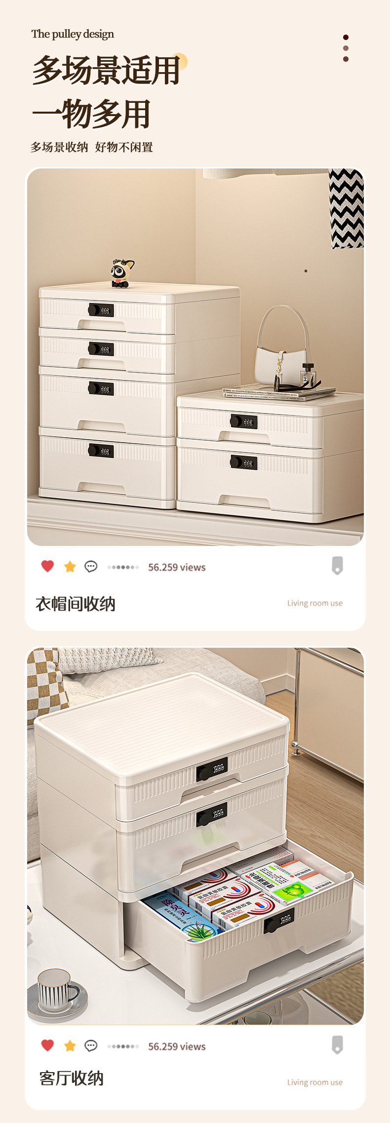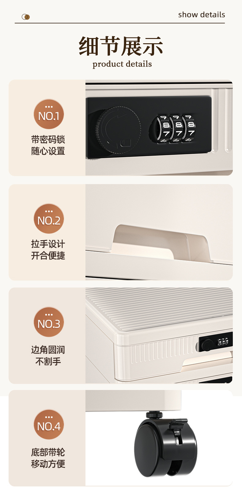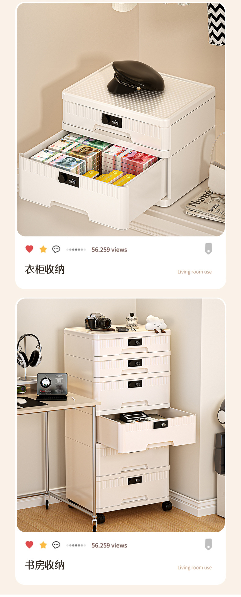 抽屉式收纳柜家用大容量带锁储物柜办公桌面桌下证件文件柜密码箱