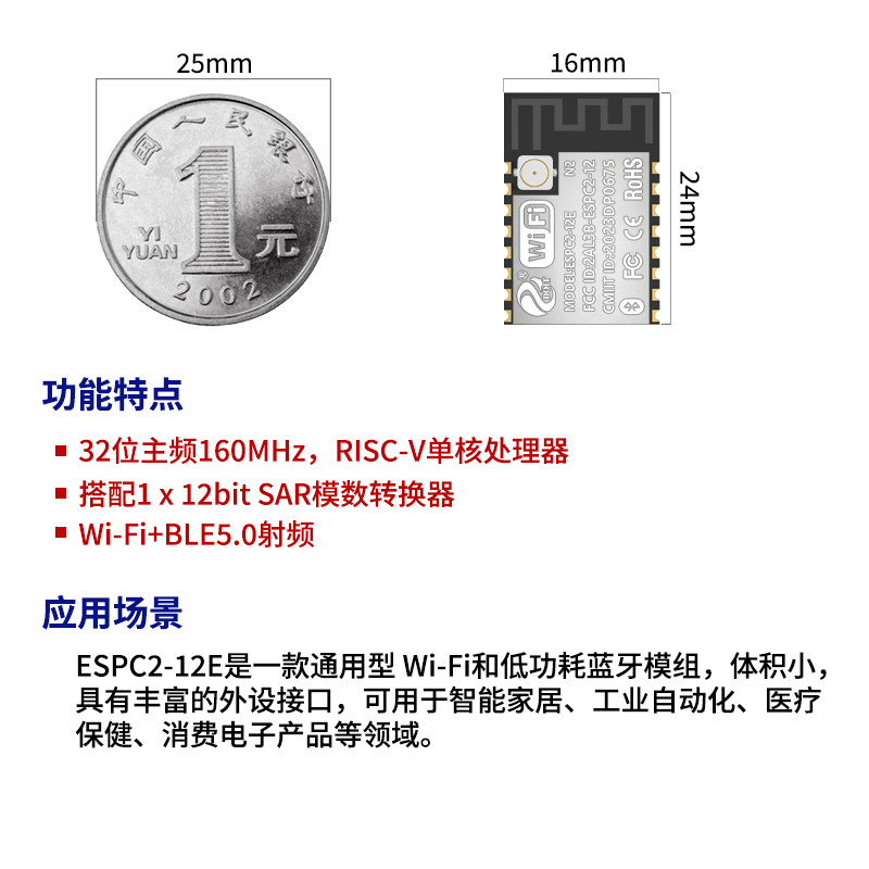 乐鑫ESP32-C2, ESPC2-12E模组,WIFI+蓝牙,兼容01/04/12F市场模组