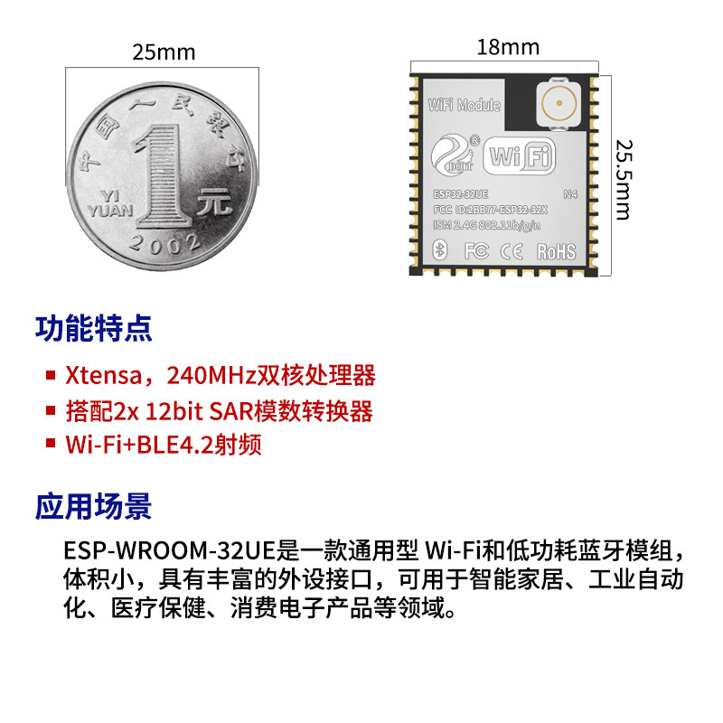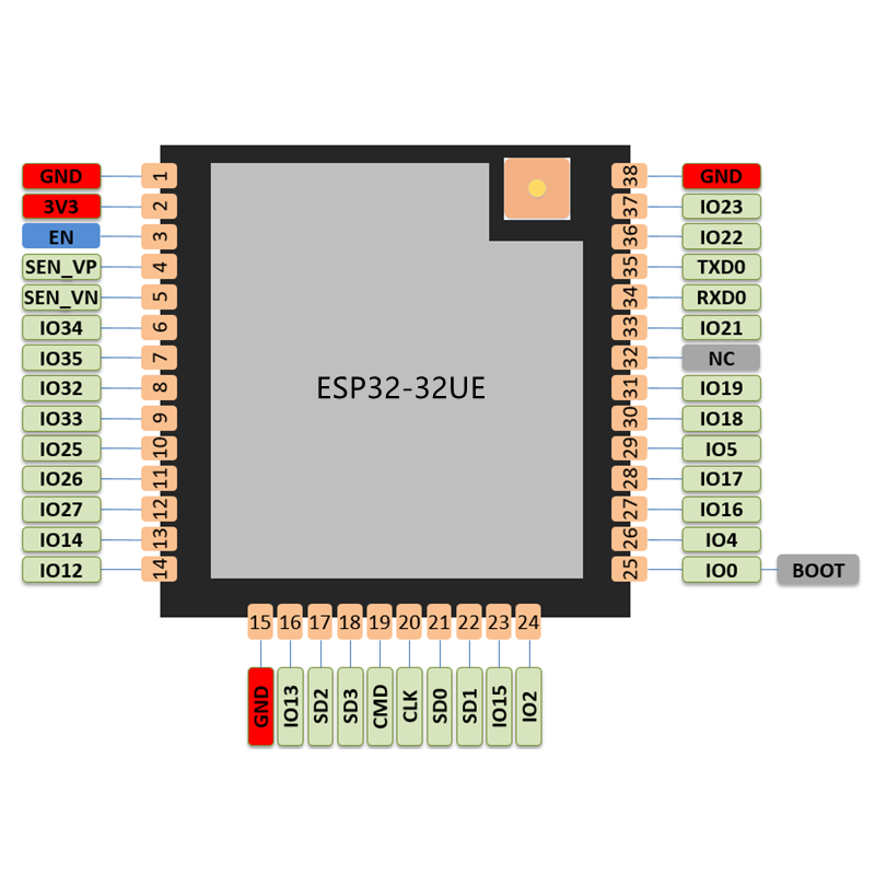 乐鑫ESP32系列,ESP32-32UE,WiFi+蓝牙双模,兼容32系列市场模组
