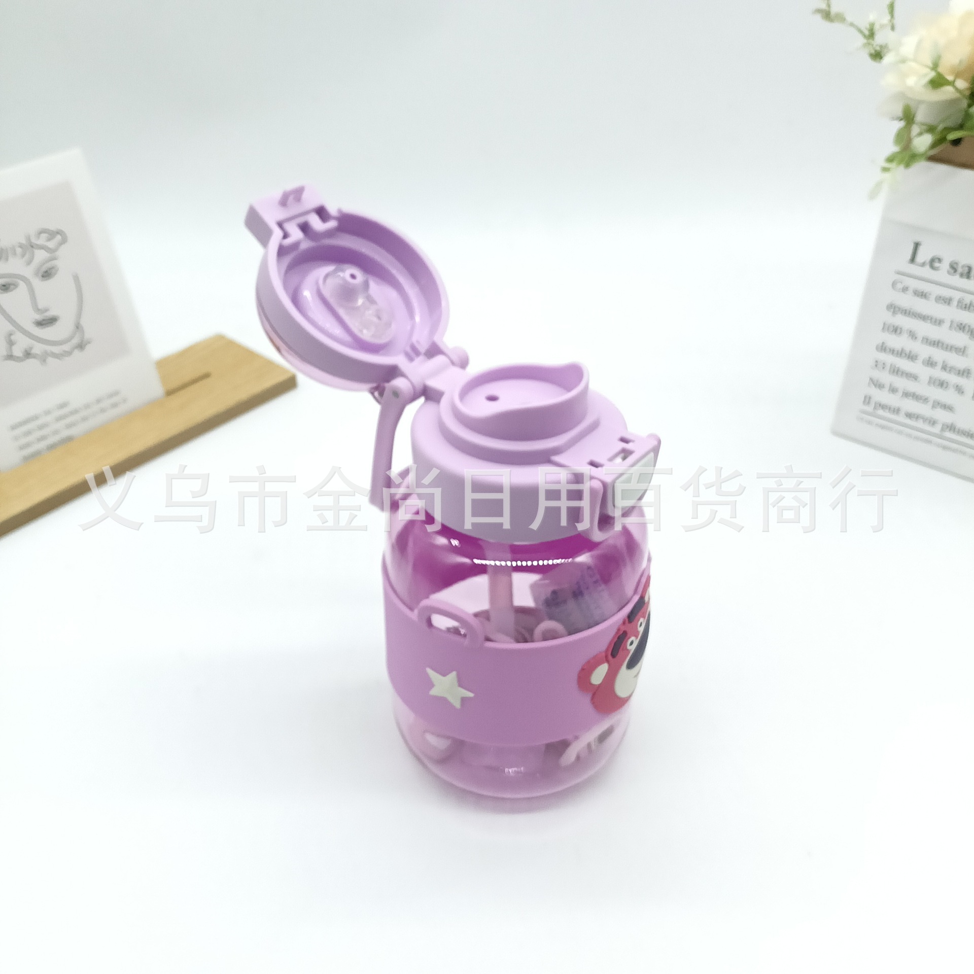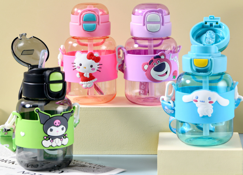 幼儿园宝宝学生杯大容量趣味可爱卡通手柄儿童塑料吸管批发