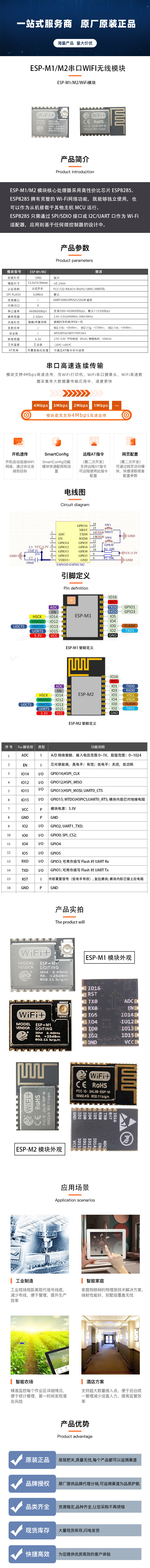 ESP-M2串口 WiFi 无线模组 8285模块兼容esp8266/FCC/CE/SRRC认证