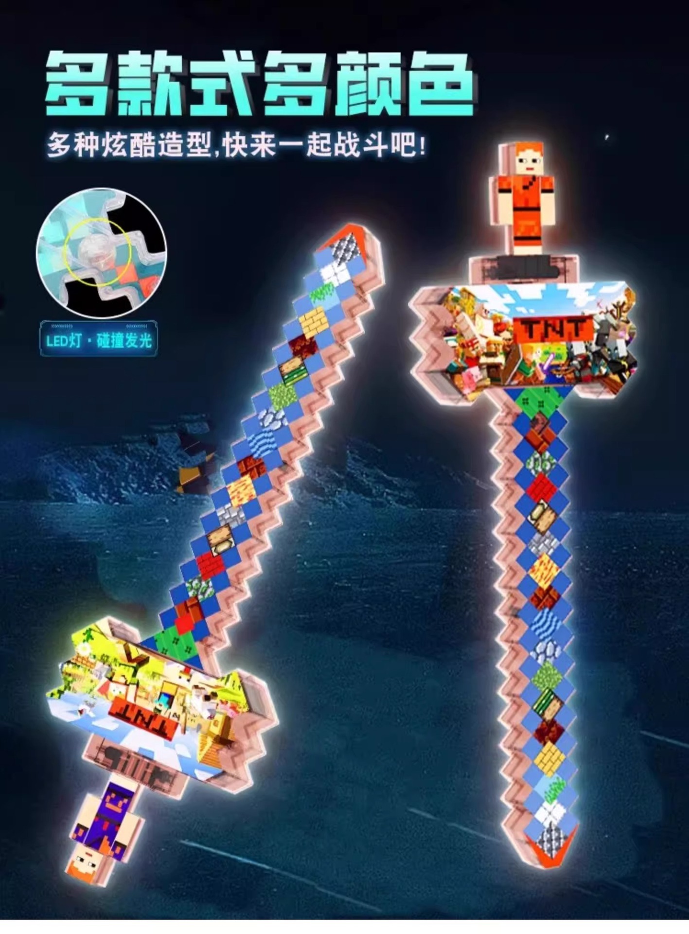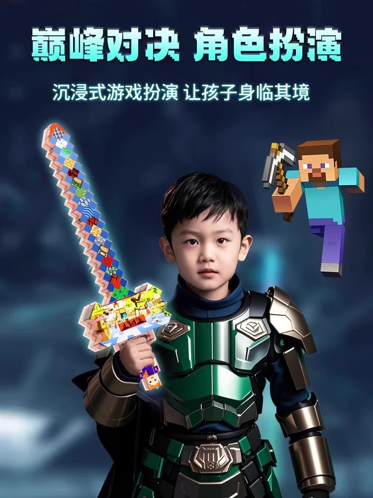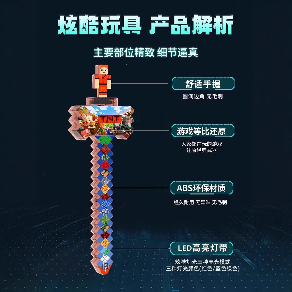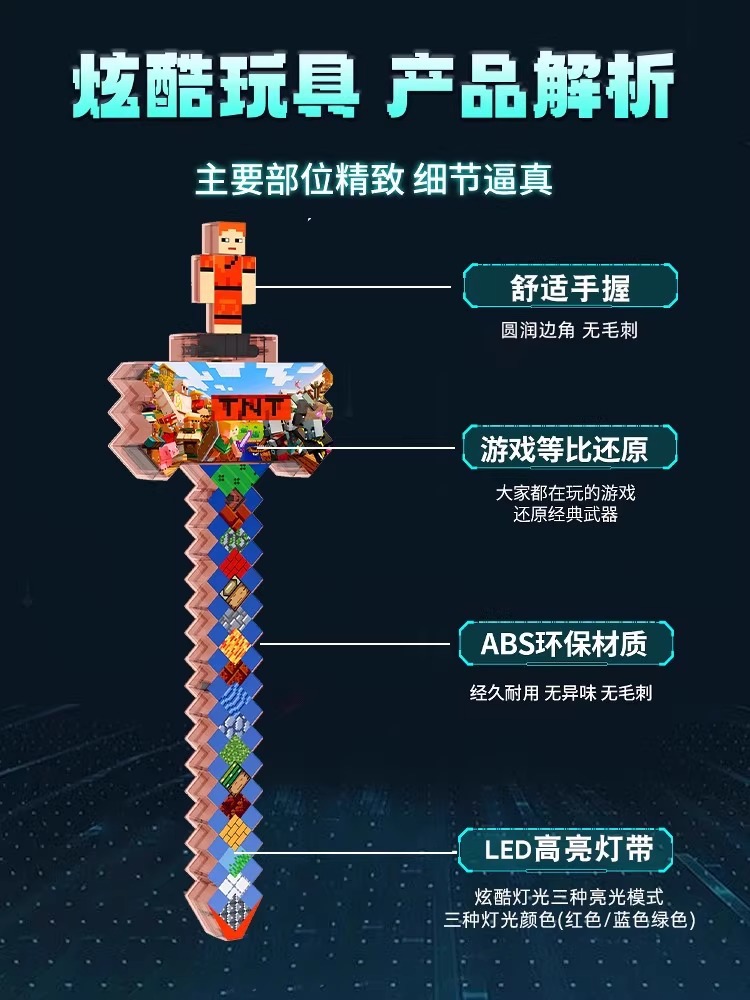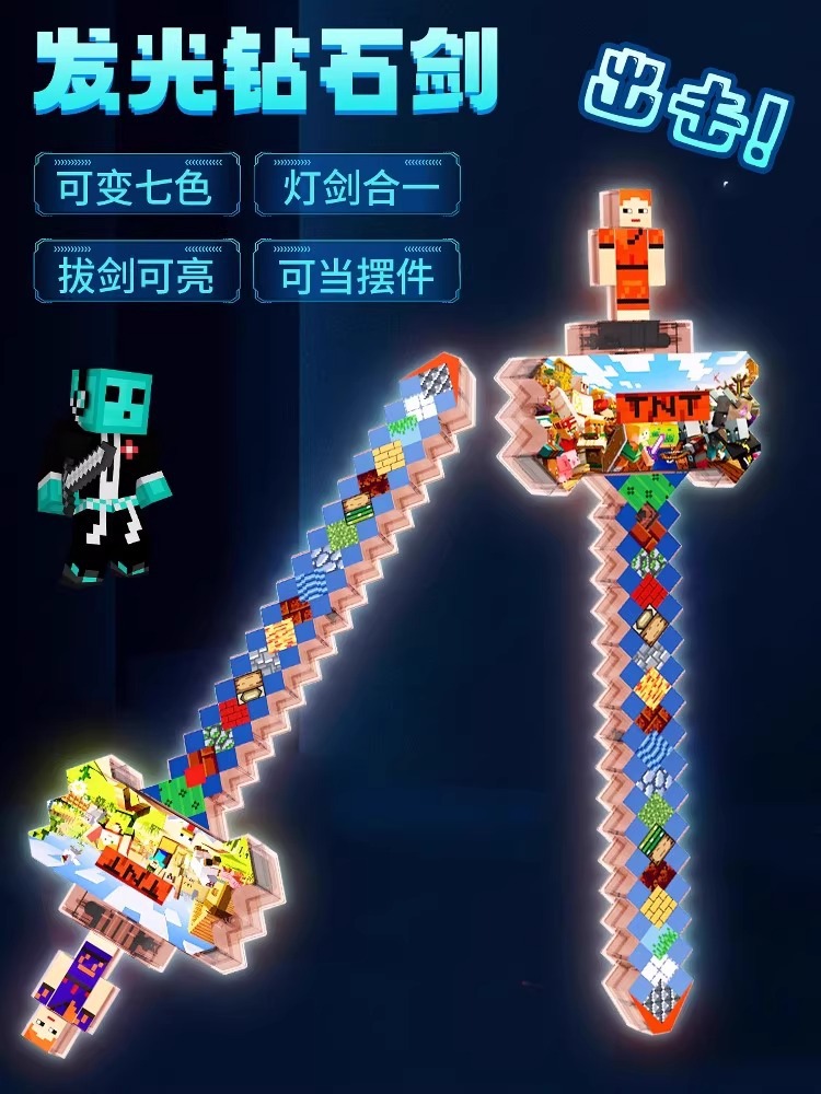 我的世界玩具男女孩发光宝剑像素MC七色钻石剑儿童解压Minecraft