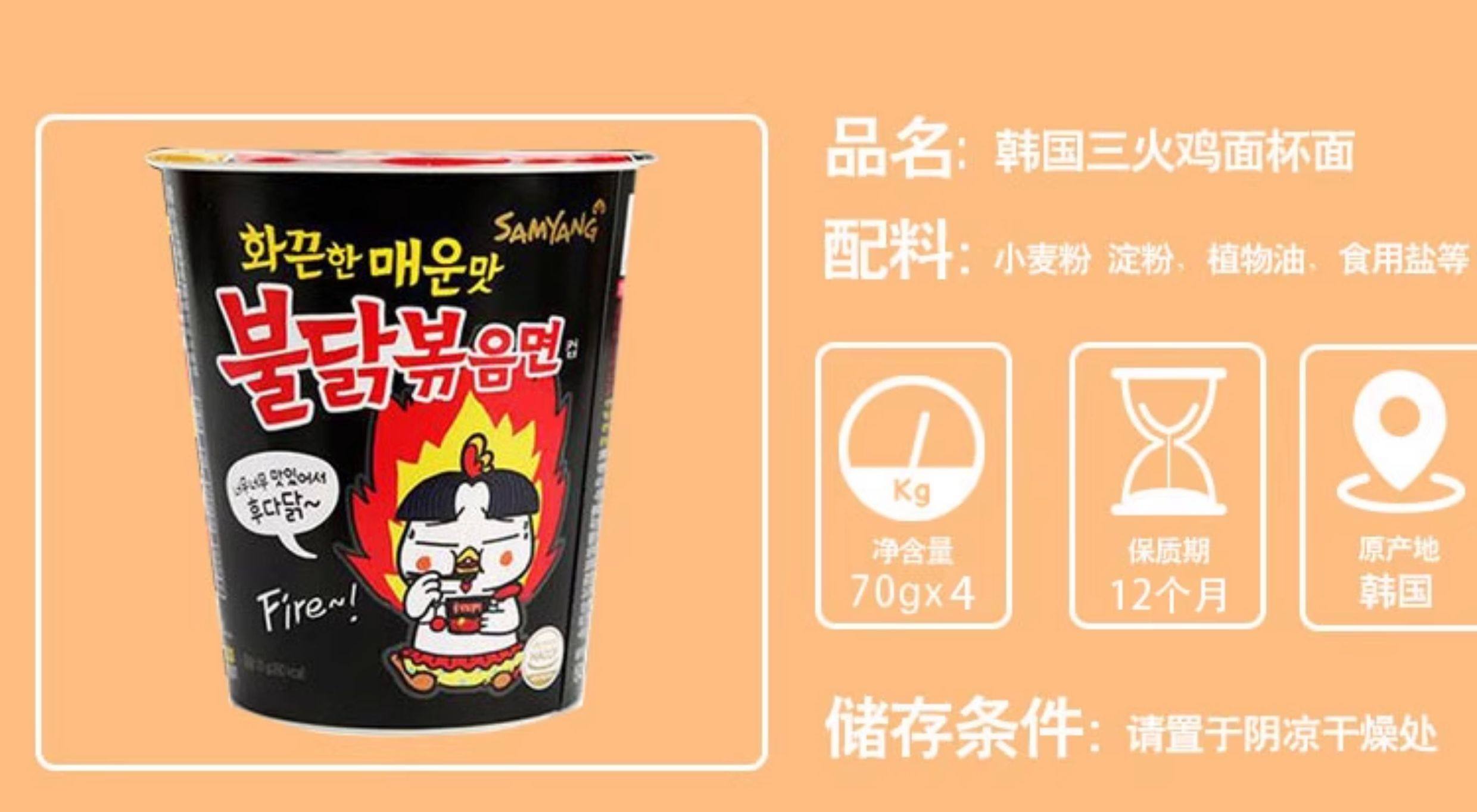 韩国进口三养超辣火鸡面奶油芝士泡面桶装速食方便面变态辣杯面