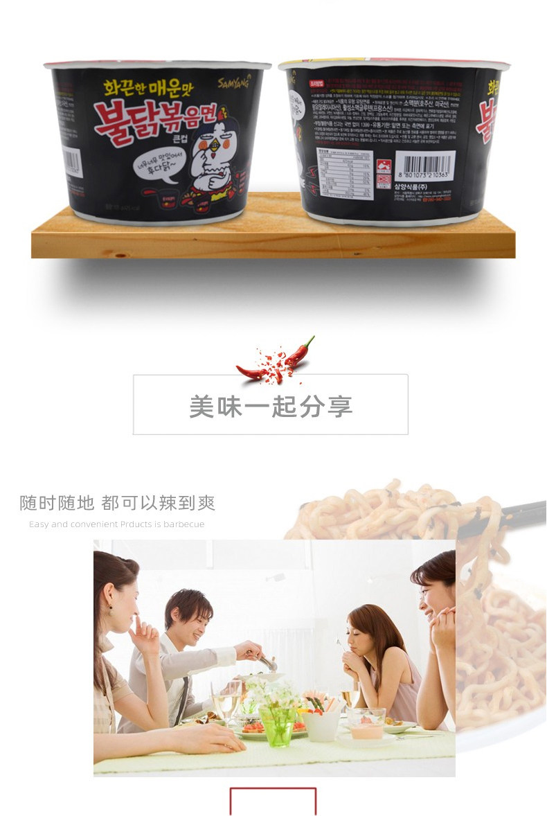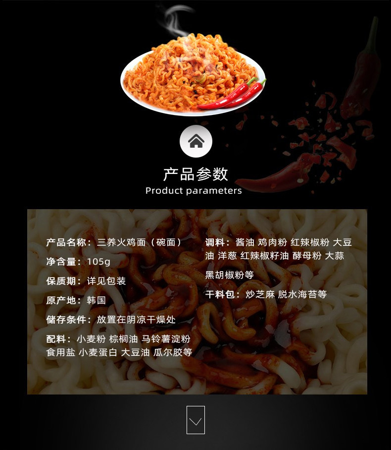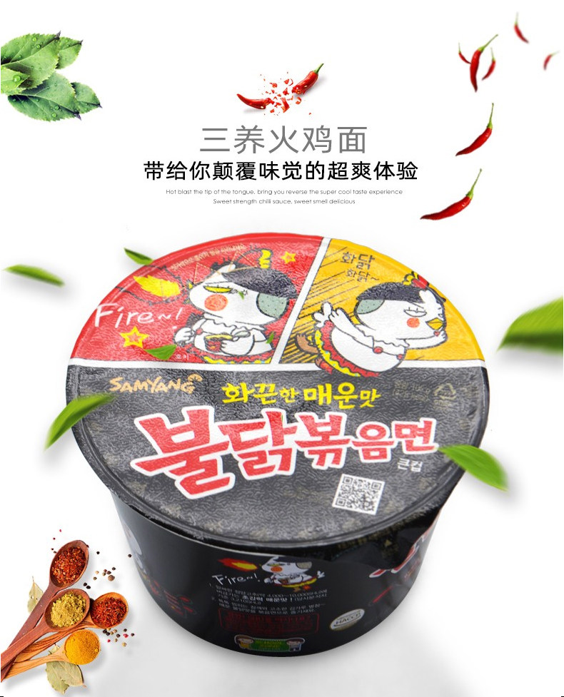 韩国进口三养火鸡面网红方便面超辣鸡肉味碗面105g速食泡面干拌面