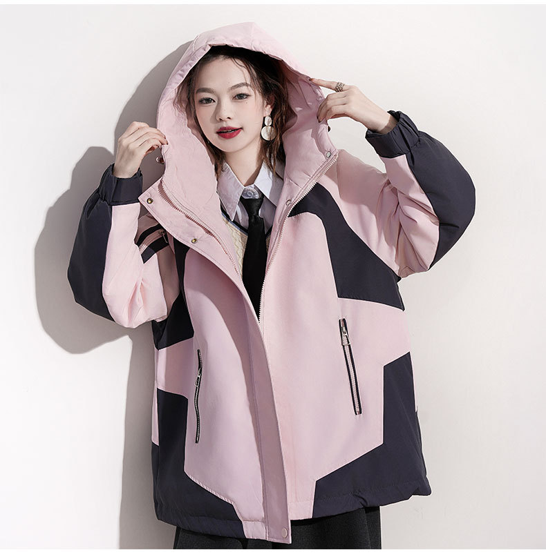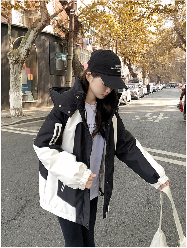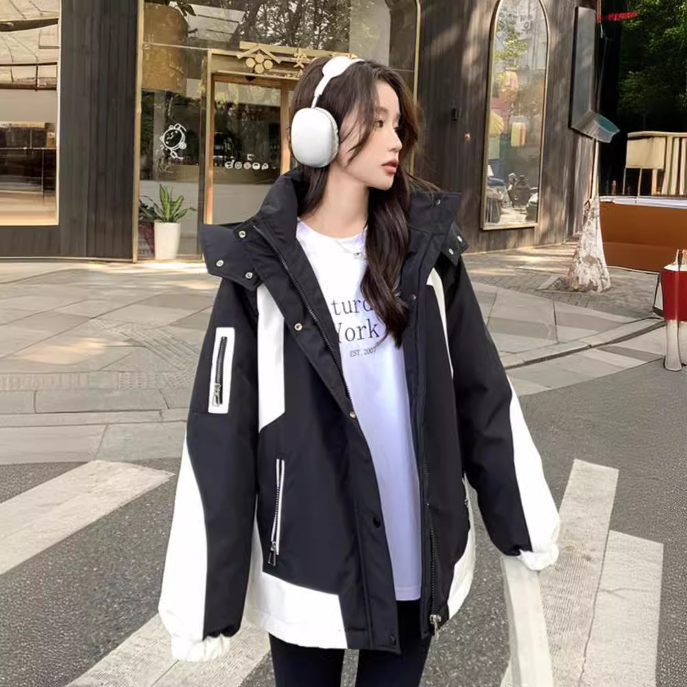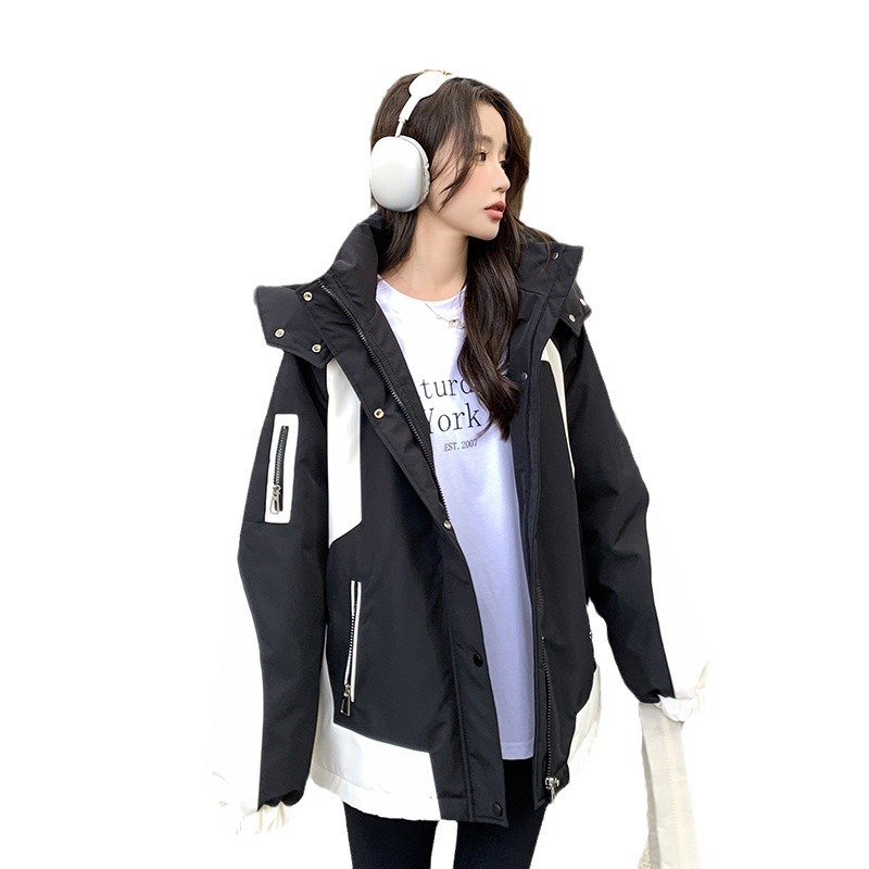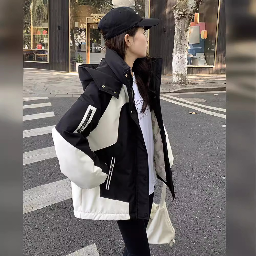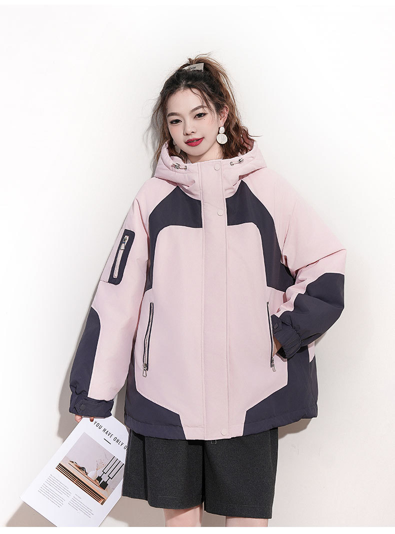 2025年新款工装户外登山服宽松棉衣女冬季短款冲锋衣棉服加厚外套