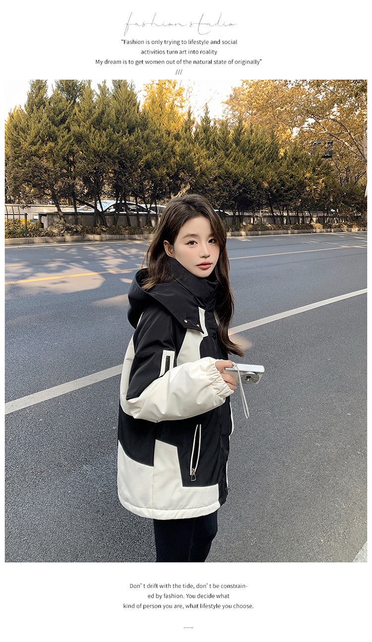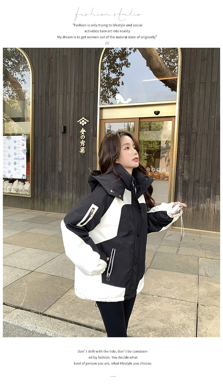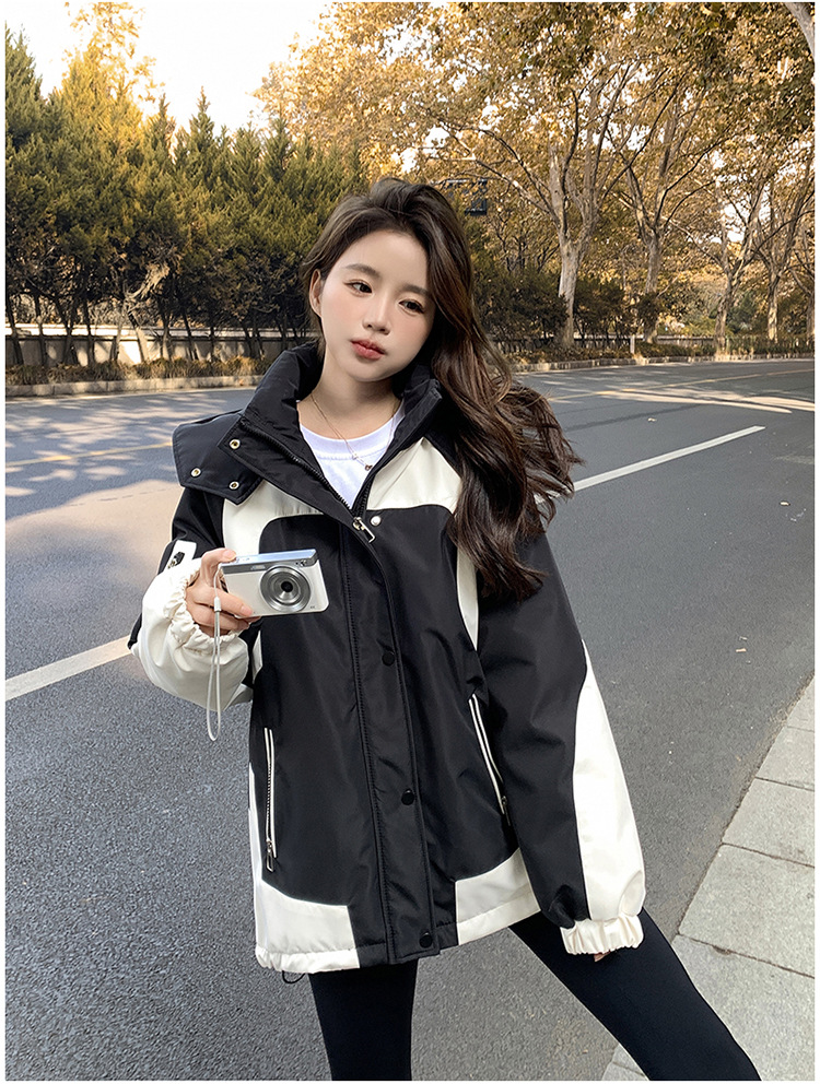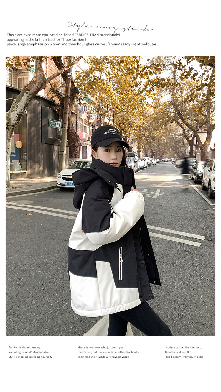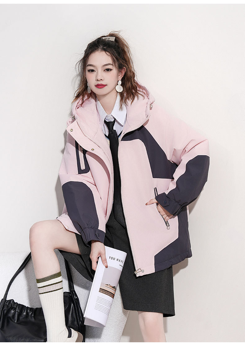 2025年新款工装户外登山服宽松棉衣女冬季短款冲锋衣棉服加厚外套