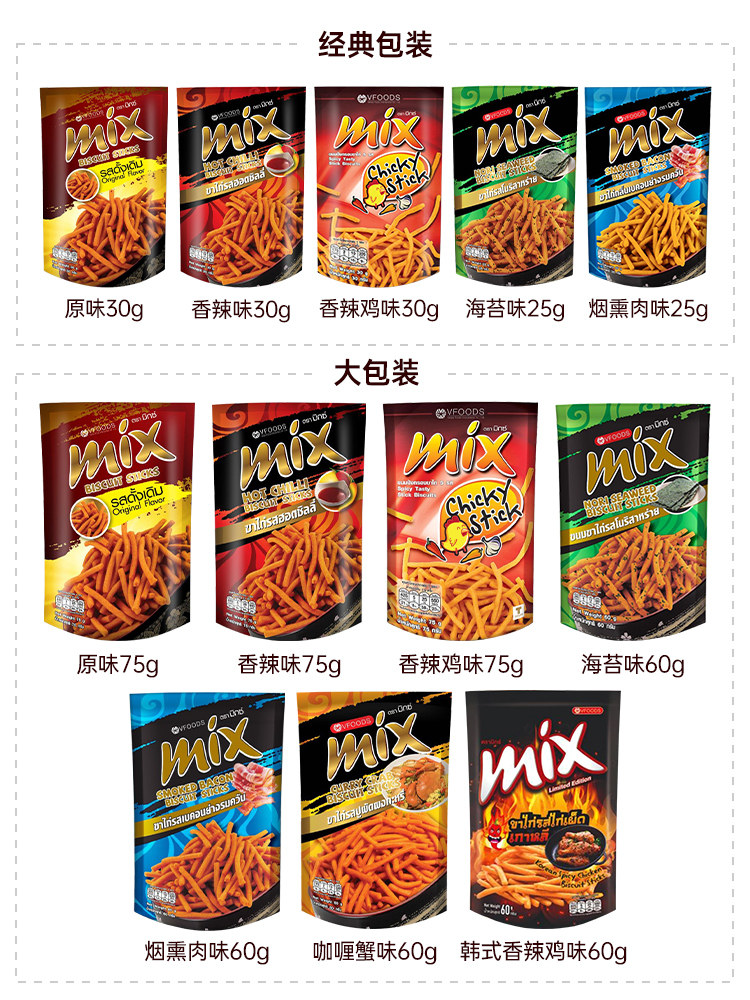 泰国进口VFOODS MIX脆脆条香辣咪咪虾条袋薯条膨化零食礼包