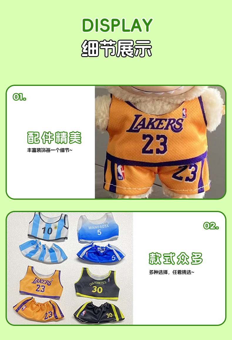 labubu娃衣17cm一三代毛绒搪胶公仔换装球衣可着替套装拉布布衣服