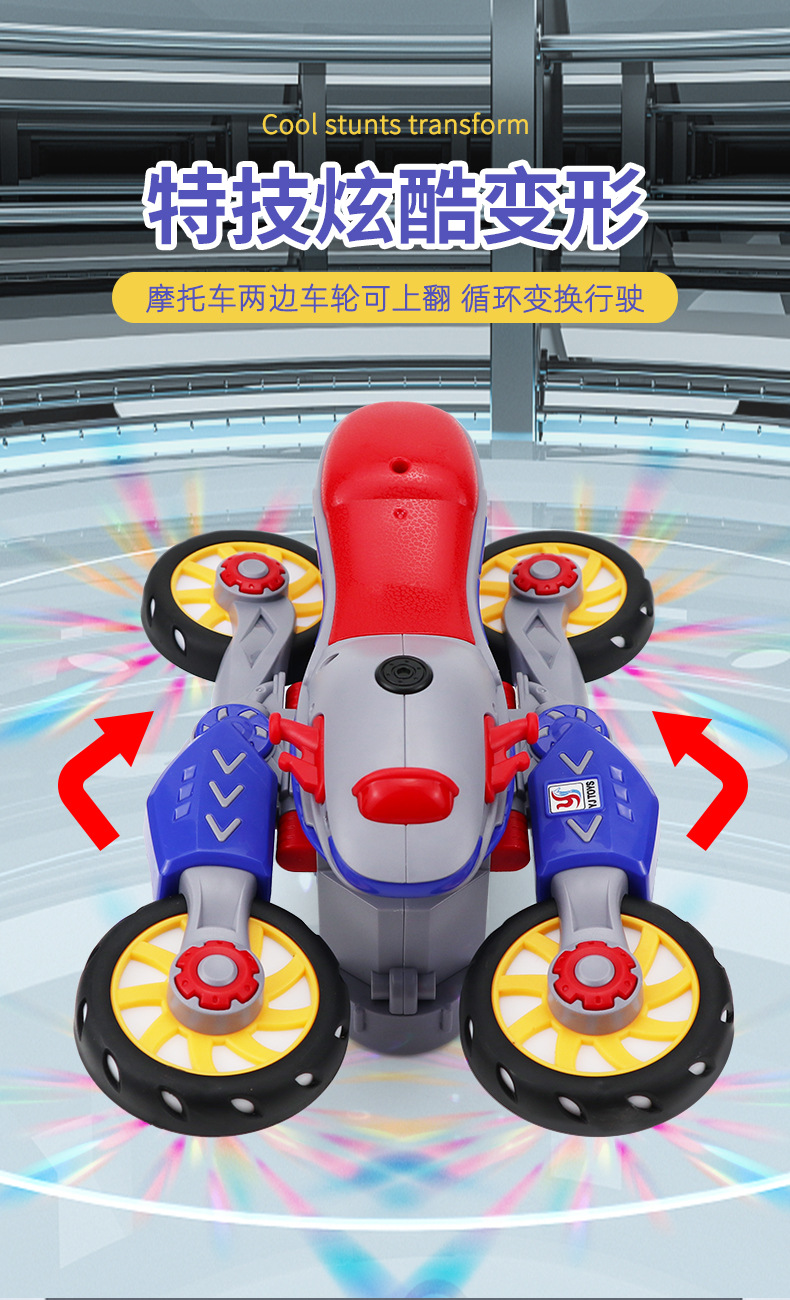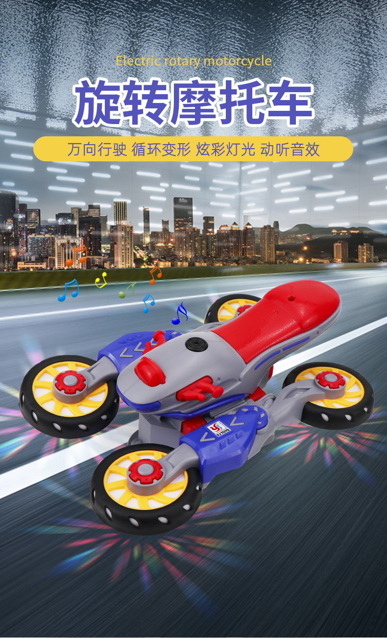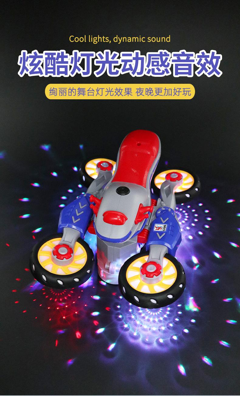 跨境电动万向车特技旋转摩托车变形车灯光音乐电动儿童玩具批发