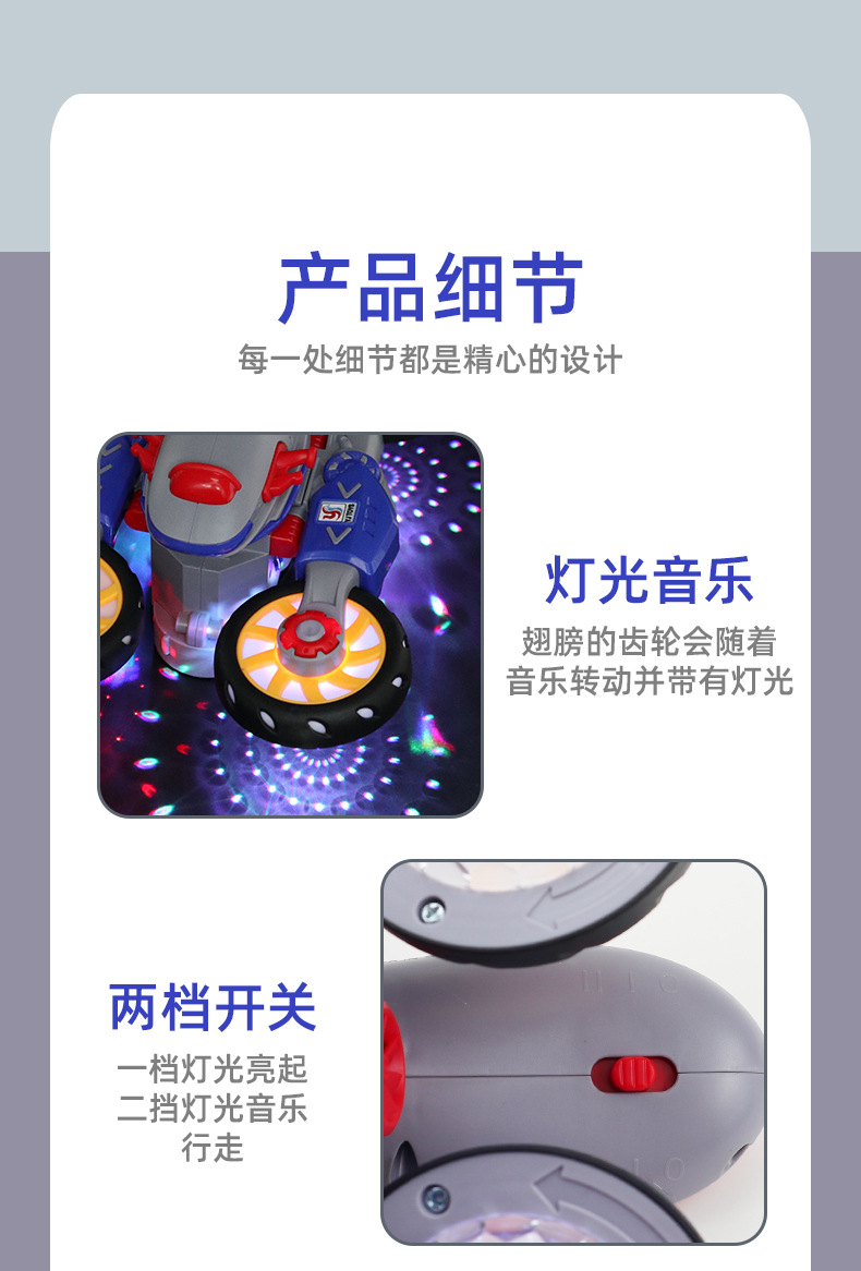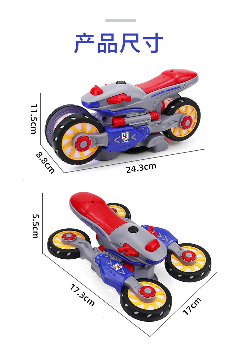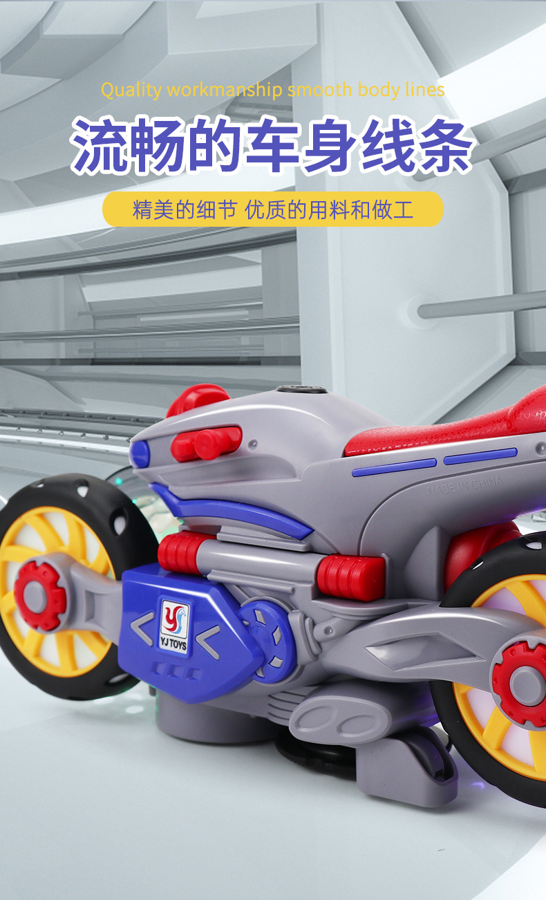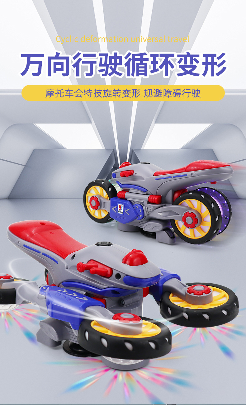 跨境电动万向车特技旋转摩托车变形车灯光音乐电动儿童玩具批发