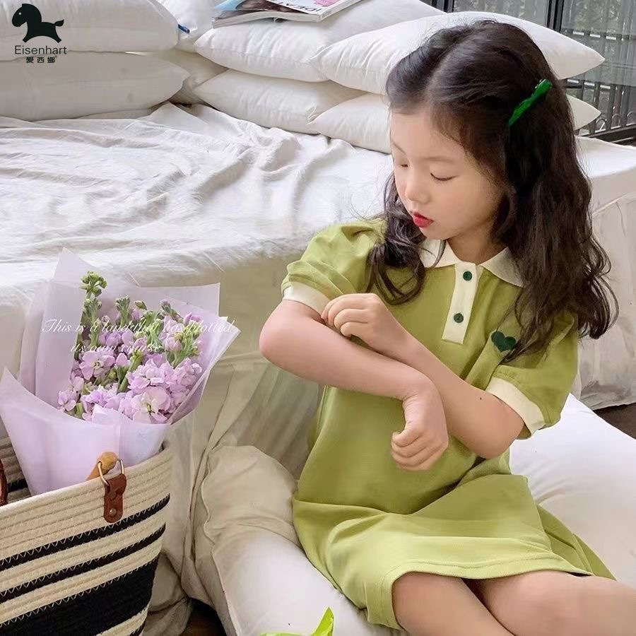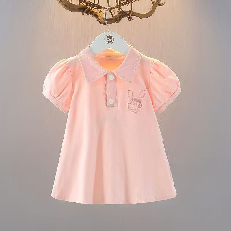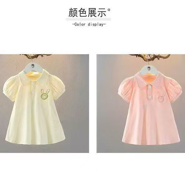 女童连衣裙夏季洋气泡泡袖2025宝宝新款儿童短袖珠地小公主裙子