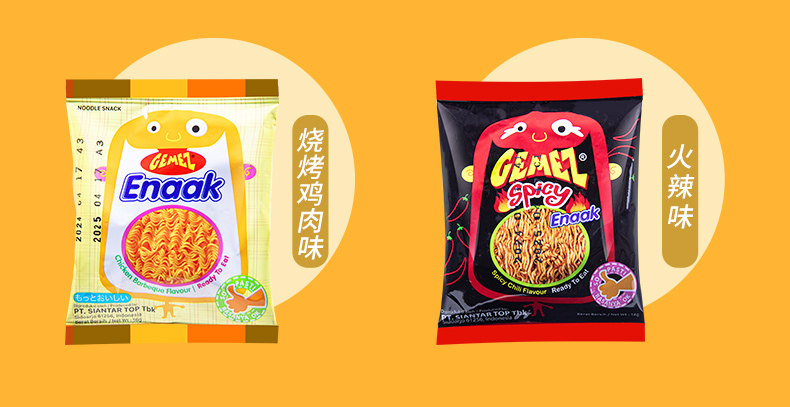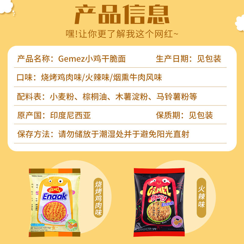 GEMEZ印尼小鸡干脆面烧烤味整箱进口干吃方便面儿童网红解馋零食