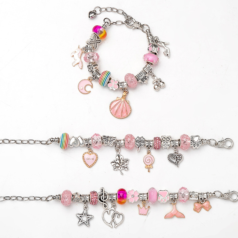 跨境爆款儿童手工水晶散珠合金手链diy串珠材料包饰品配件礼盒装