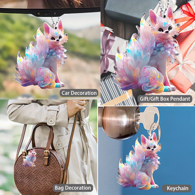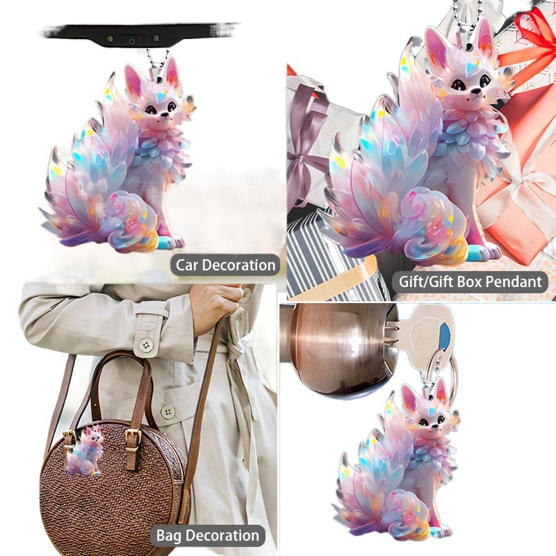 跨境新款2D热销彩色狐狸亚克力挂件车内后视镜装饰挂件背包钥匙