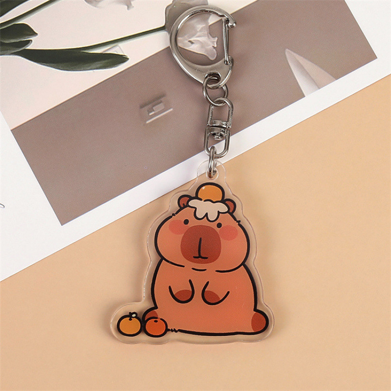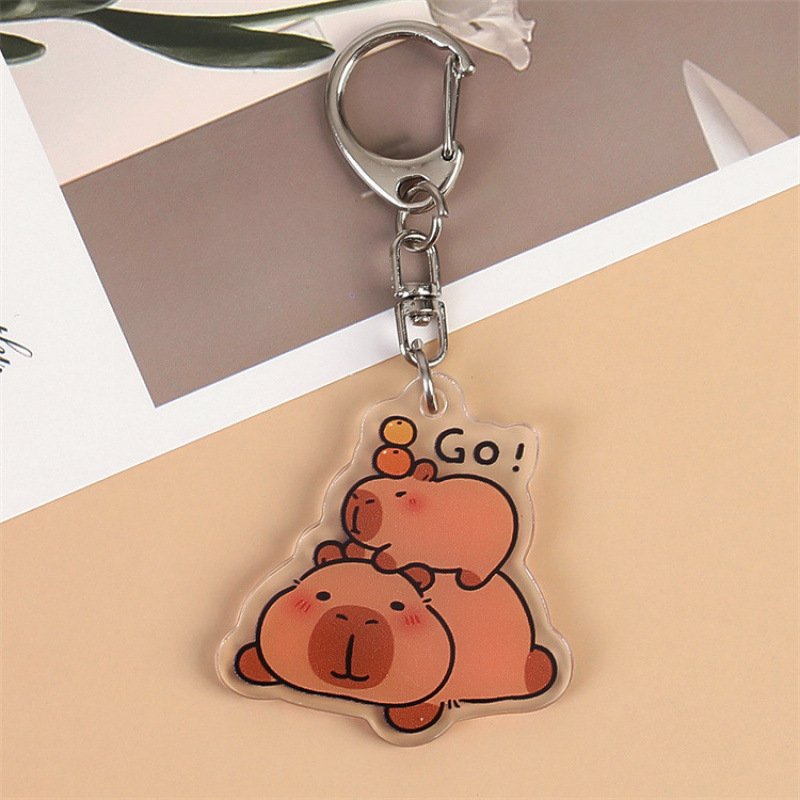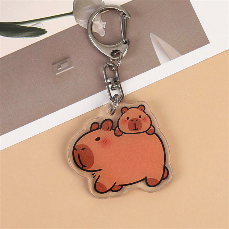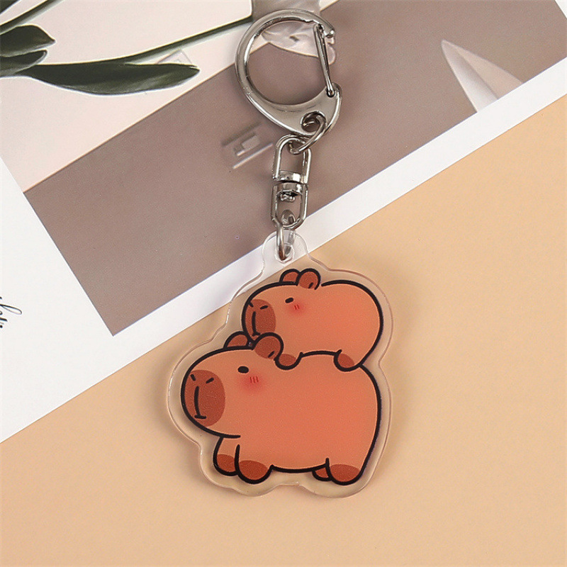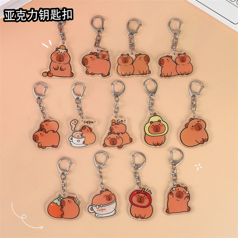 跨境新款2可爱卡皮巴拉钥匙扣卡通水豚亚克力钥匙扣