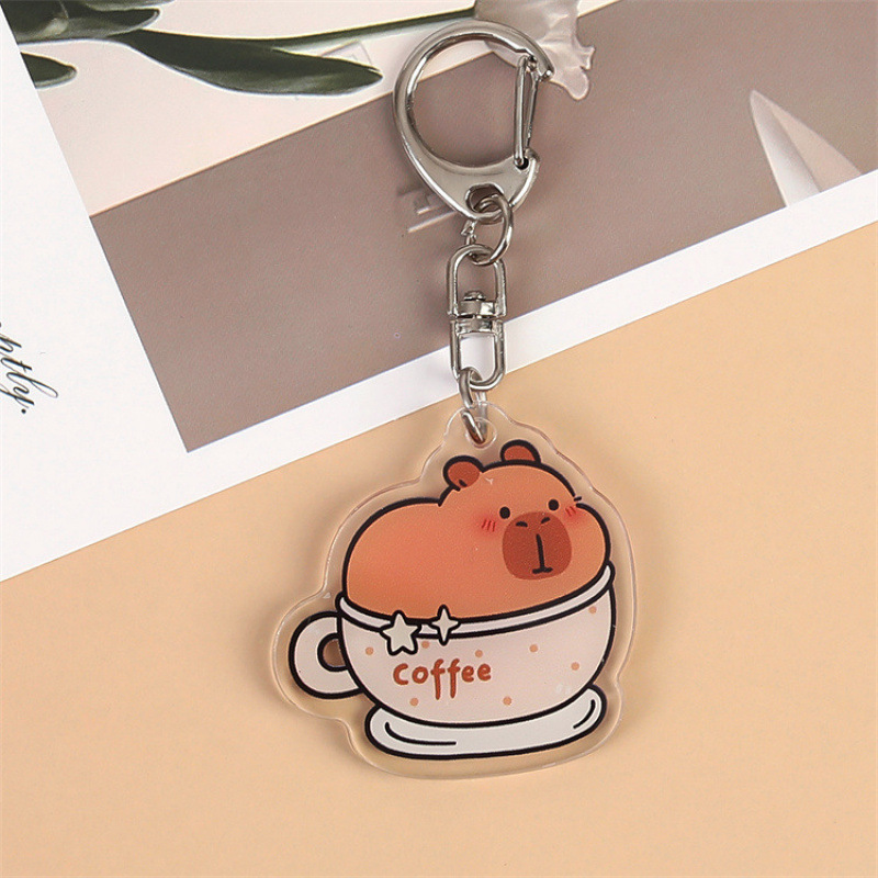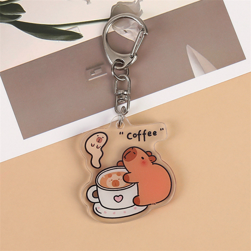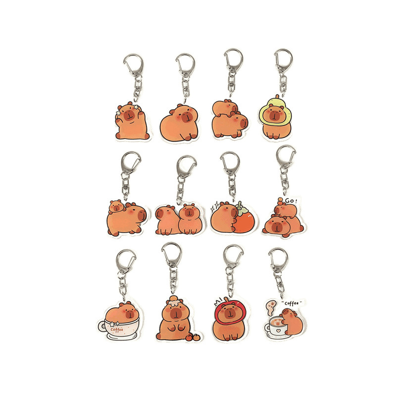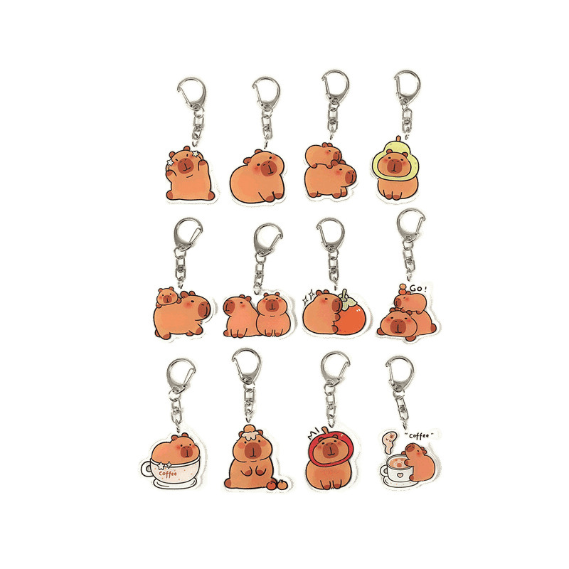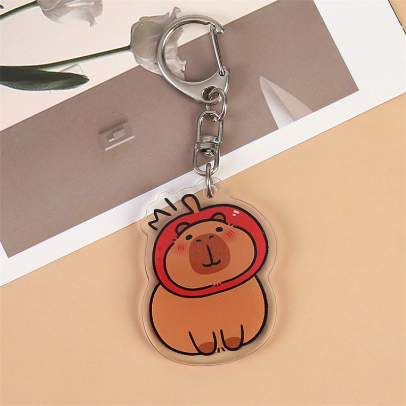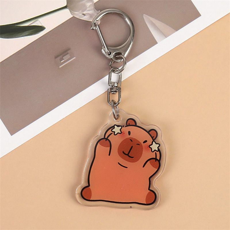跨境新款2可爱卡皮巴拉钥匙扣卡通水豚亚克力钥匙扣