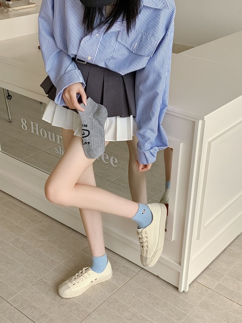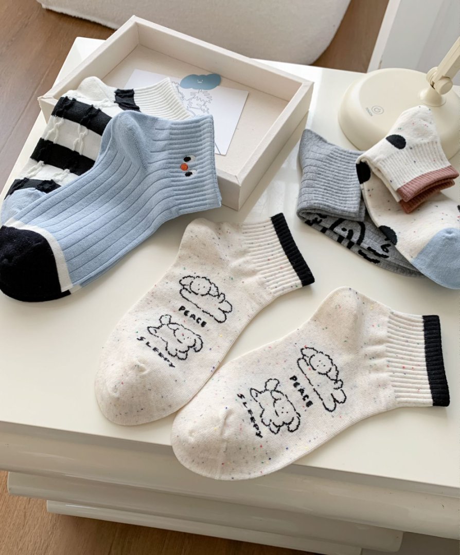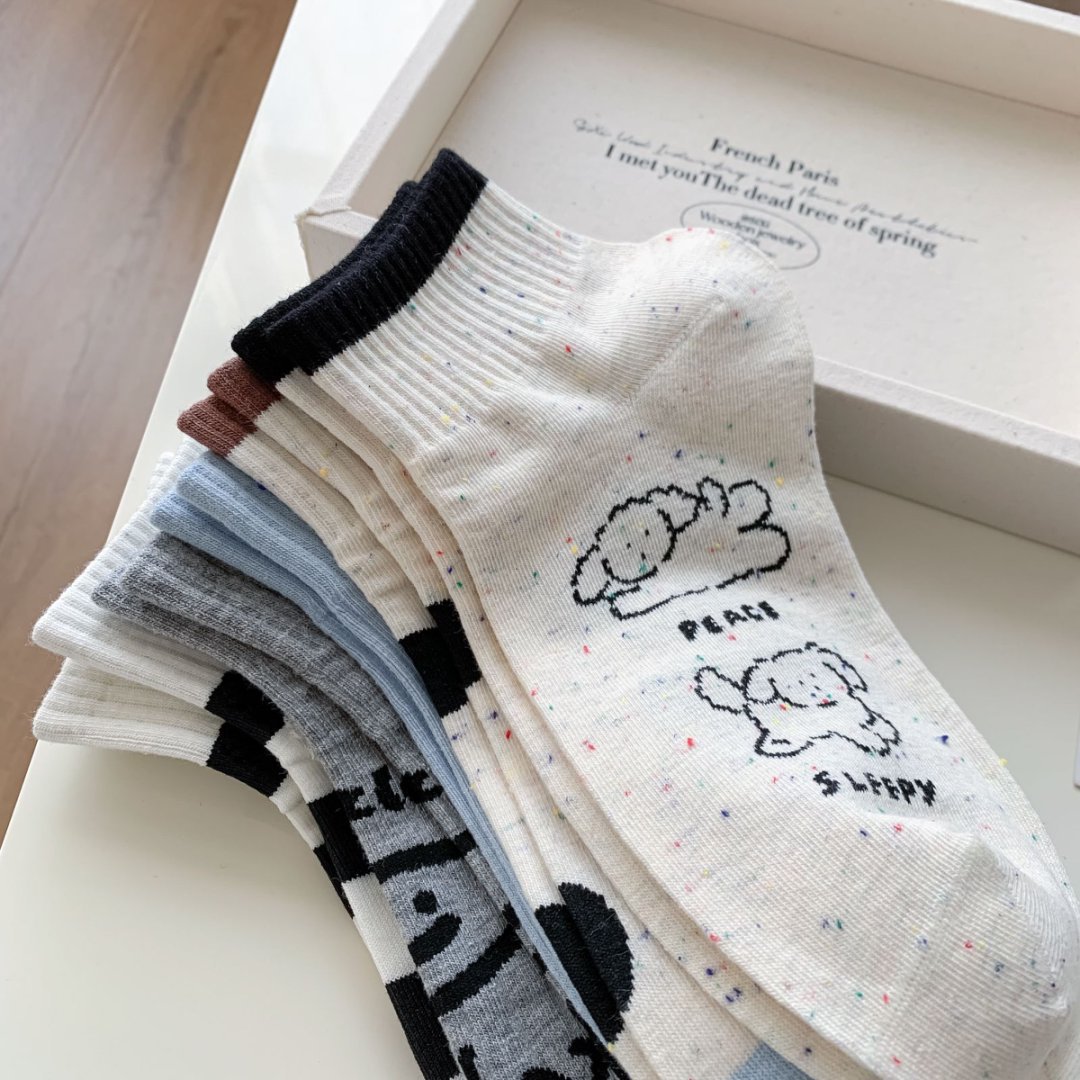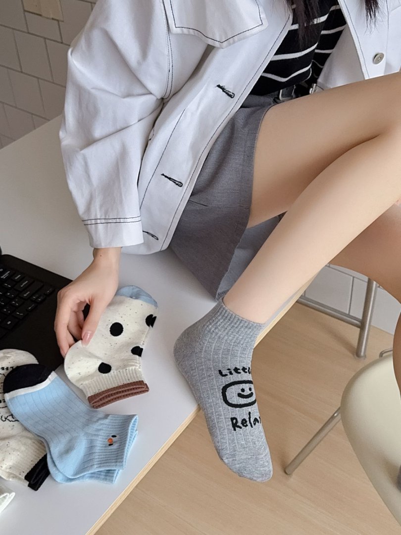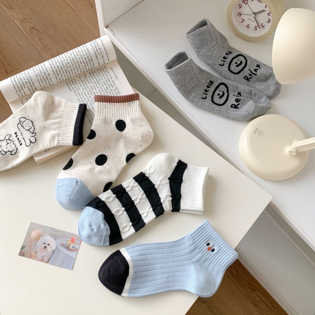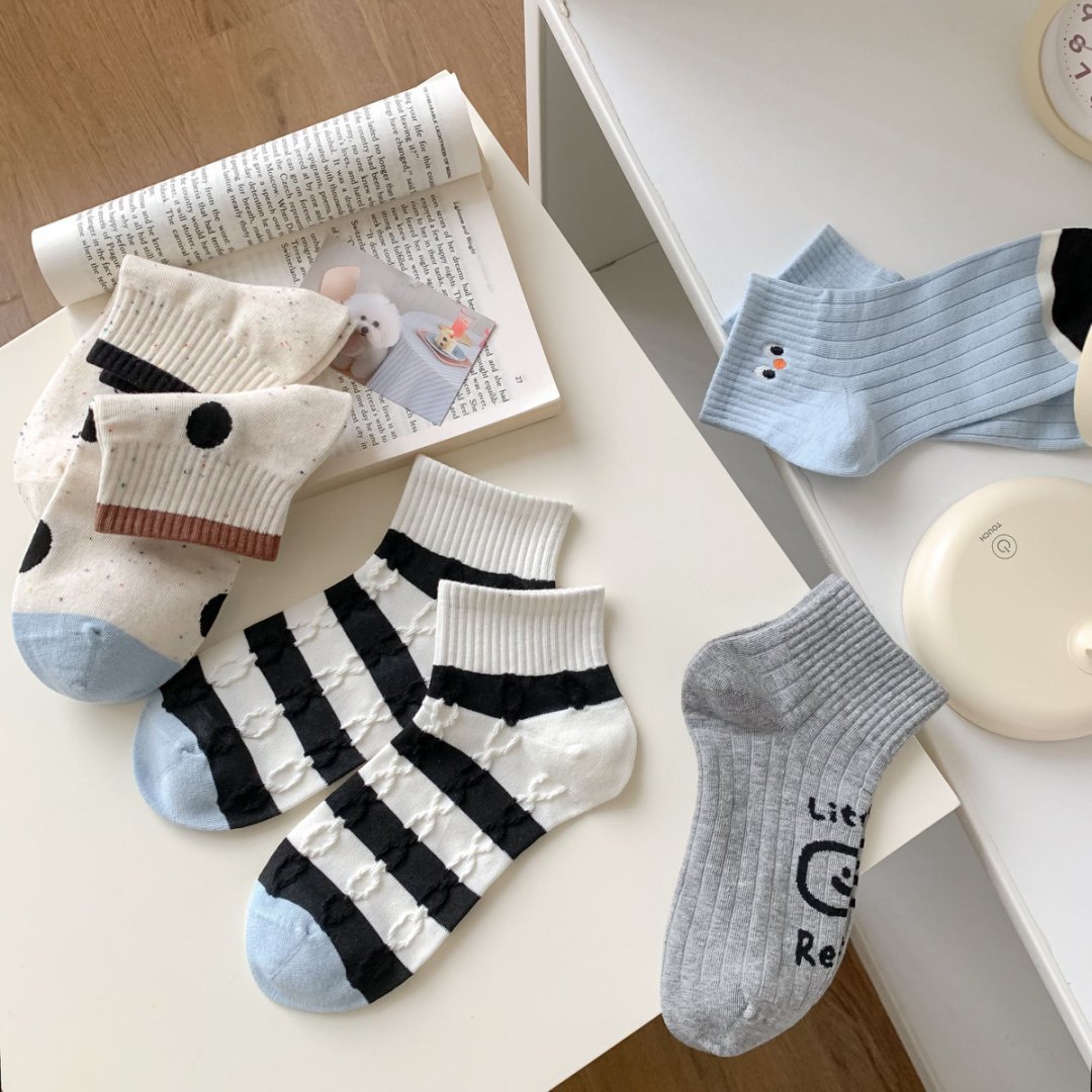 Mekki夏季25袜子女新款黑色波点条纹薄款图案吸汗运动短袜女袜