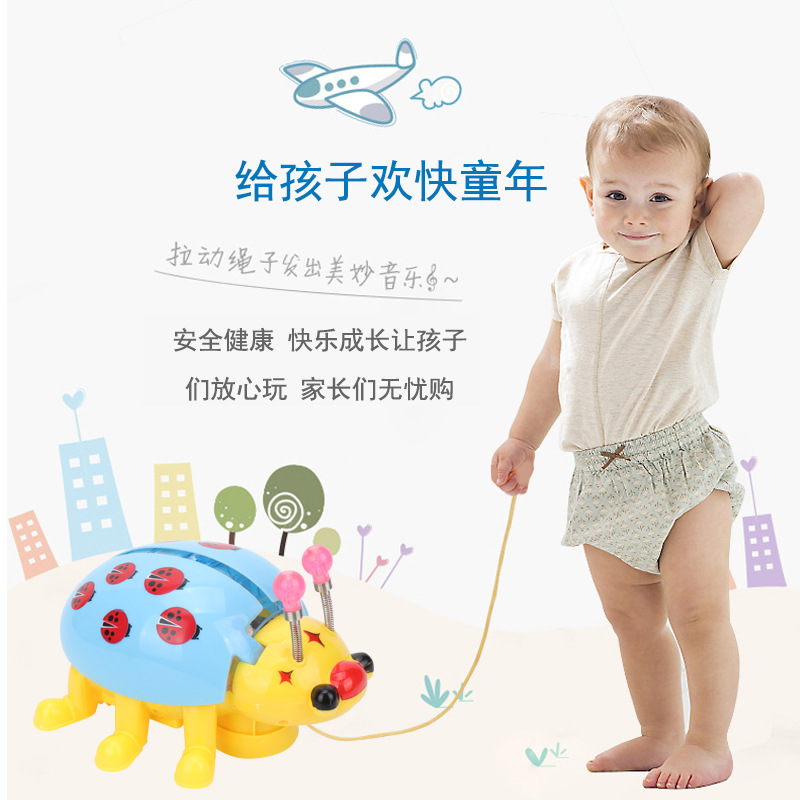 电动牵绳七星瓢虫抖音万向甲壳虫灯光音乐宝宝电动玩具夜市地摊