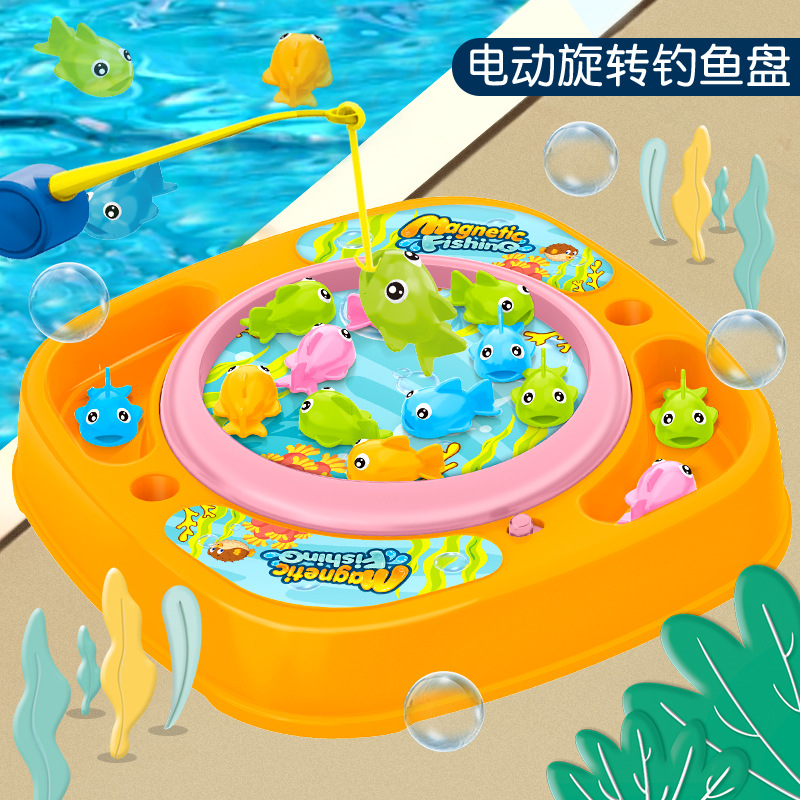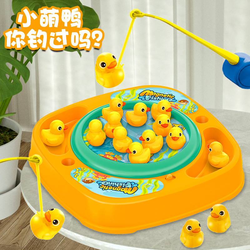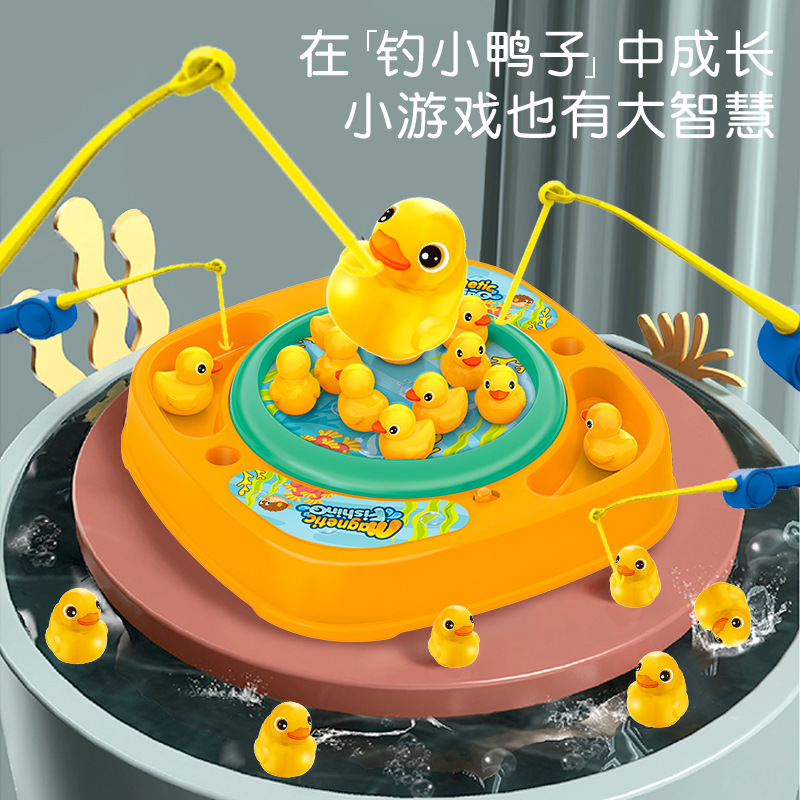 跨境儿童电动旋转磁性小萌鸭儿童电动钓鱼台 1-3岁早教男女孩玩具