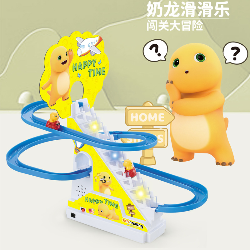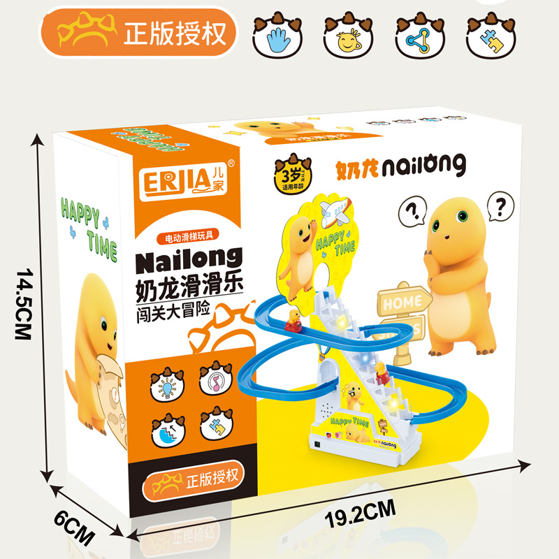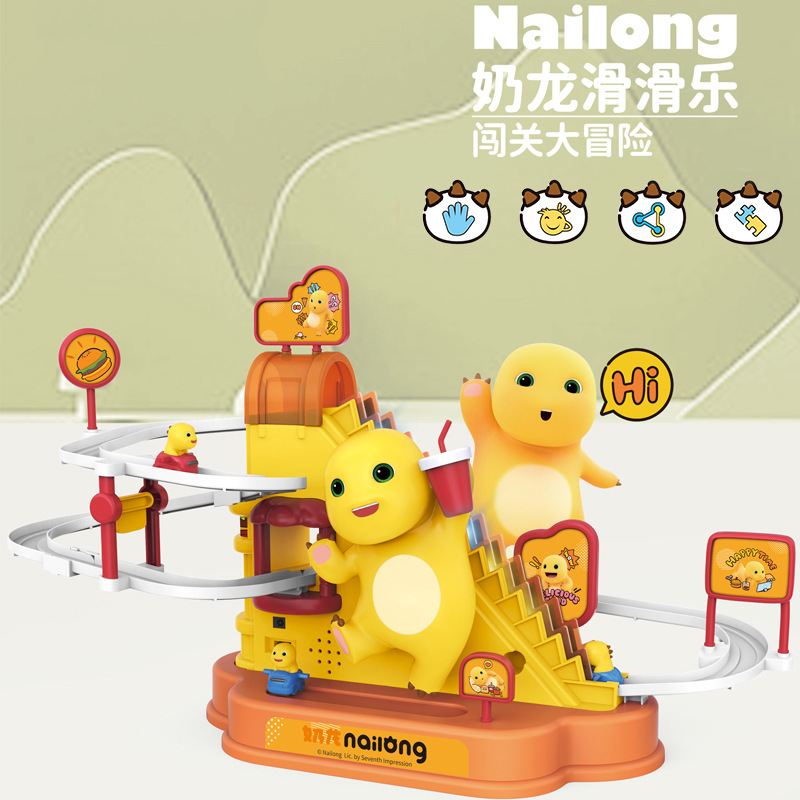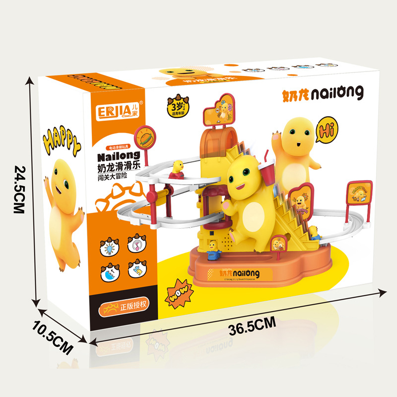 正版授权奶龙自动爬楼梯单轨道电动拼装轨道滑梯闯关冒险儿童玩具