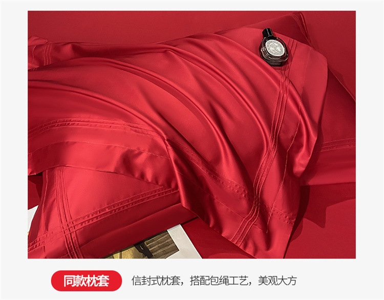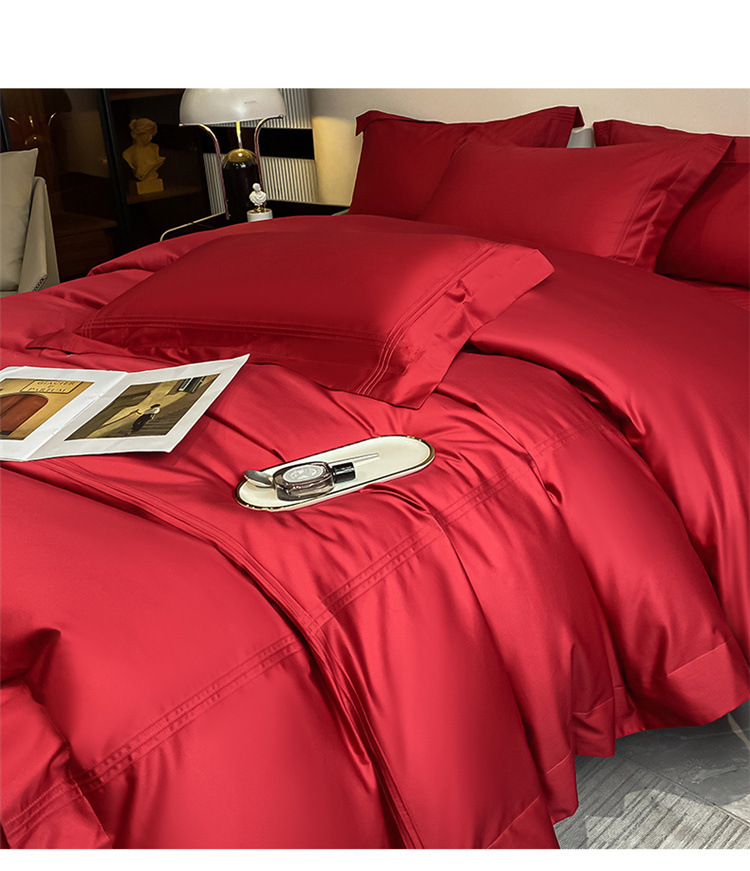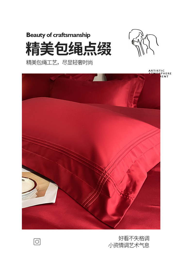结婚铺床上用品大红色简约色四件套新婚庆100支长绒棉棉喜被跨境