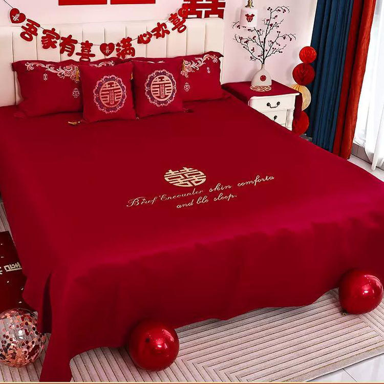 结婚四件套婚礼床上用品婚房婚床婚礼女方陪嫁男方大红色刺绣喜被