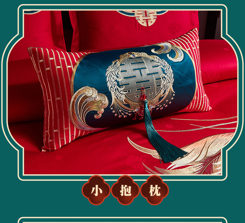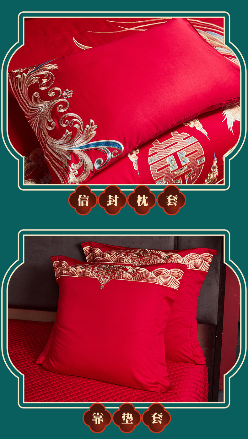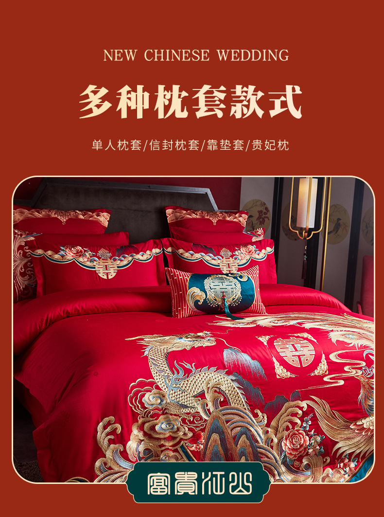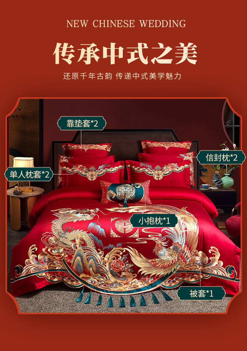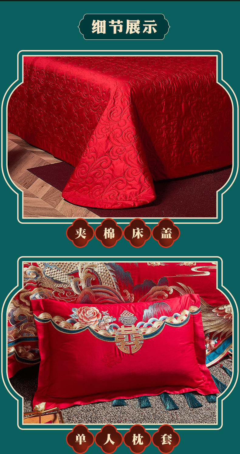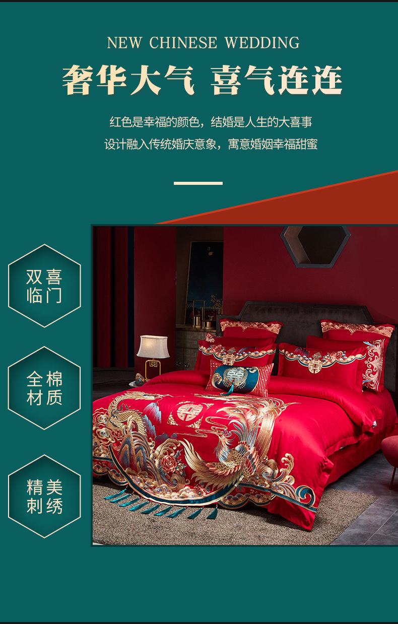 长绒棉120支婚庆四件套大红刺绣龙凤结婚陪嫁六件套中式轻奢全棉