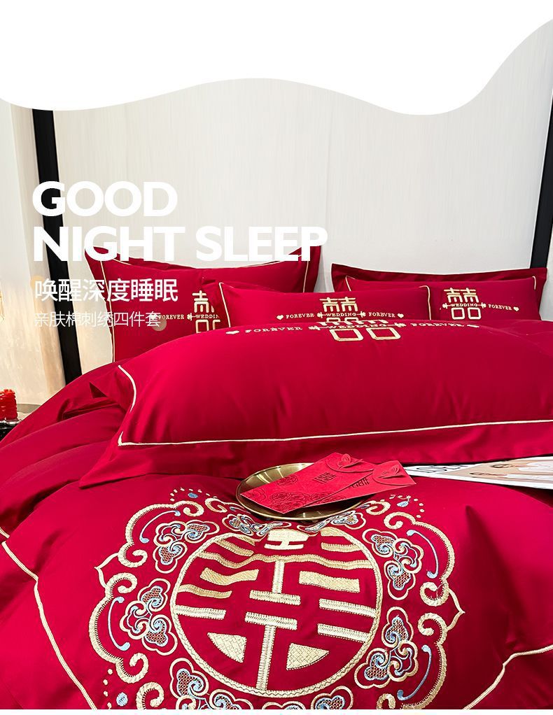 中式婚庆四件套大红色新婚刺绣被套结婚陪嫁喜庆喜被套件床上用品