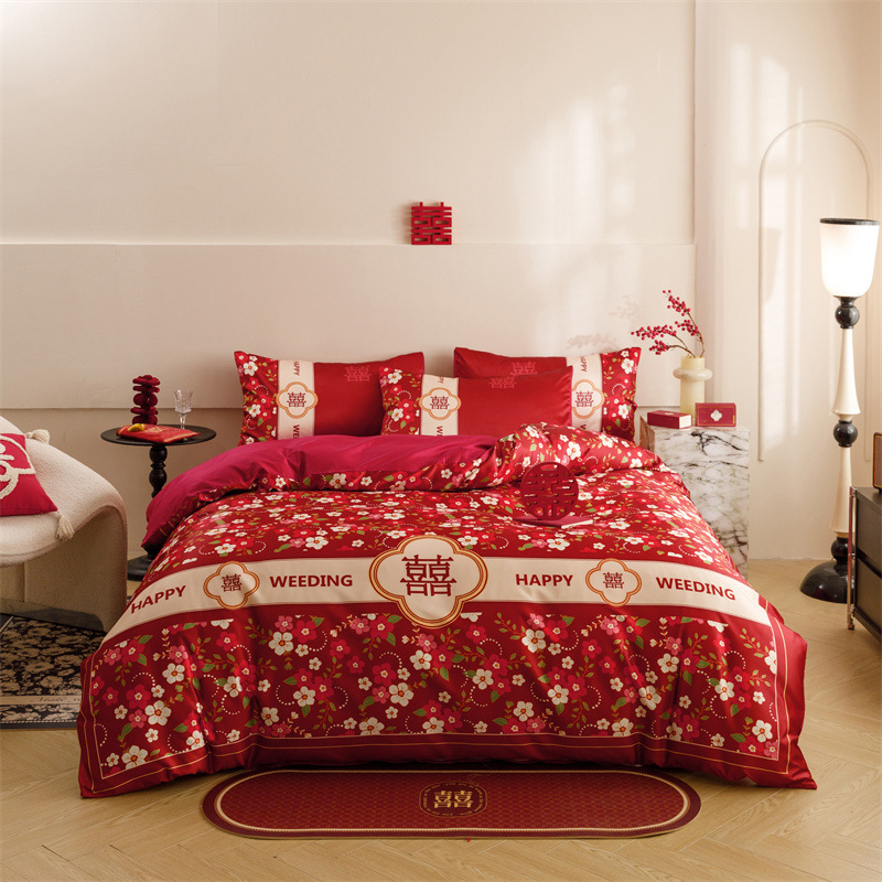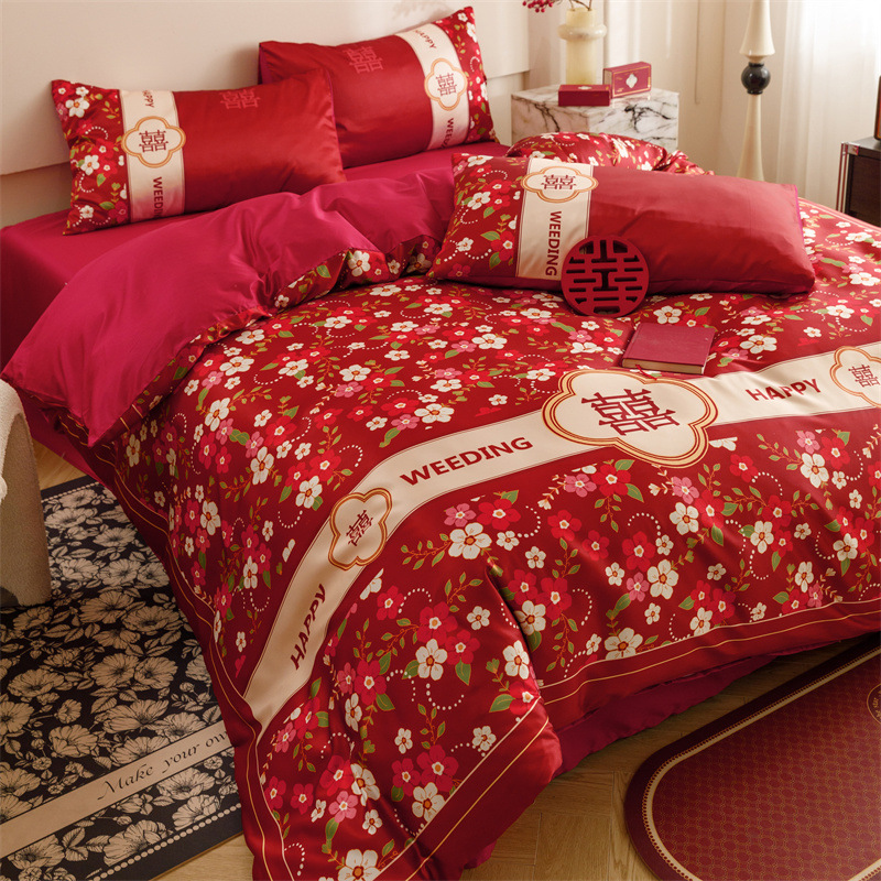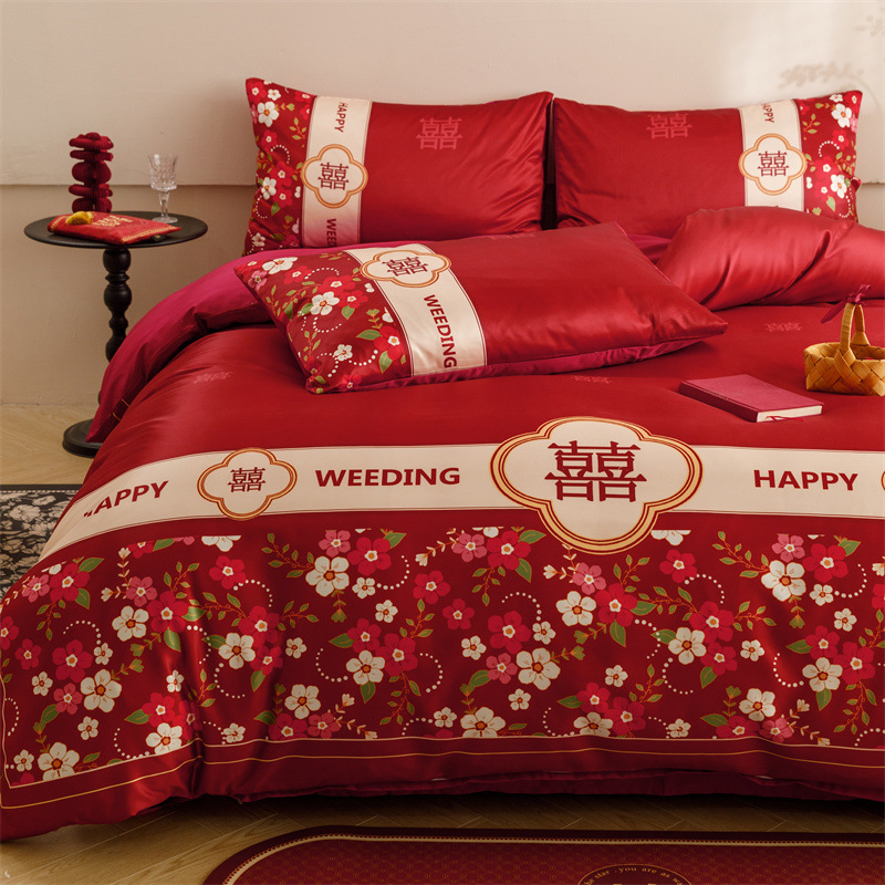 新中式红色婚庆四件套结婚床单轻奢婚房被套新婚高档喜庆床上用品