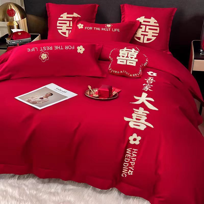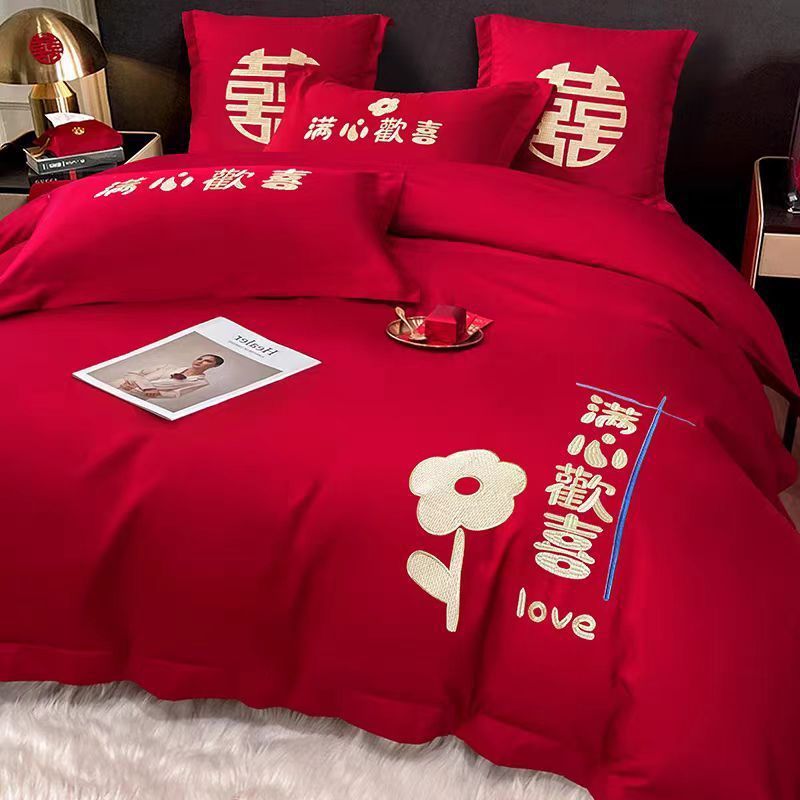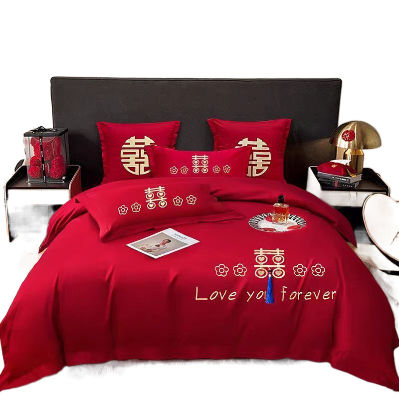 婚庆床品套件四件套刺绣婚嫁床单床笠亲肤柔软不起球结婚床上用品