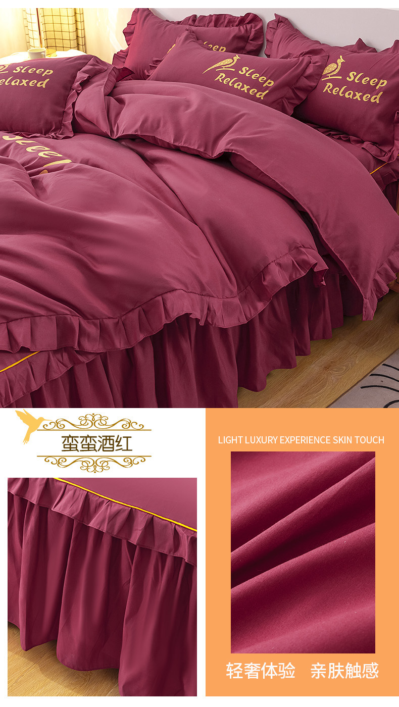 韩式韩版公主四件套床裙款被套蕾丝床罩花边喜庆结婚包邮跨境直销