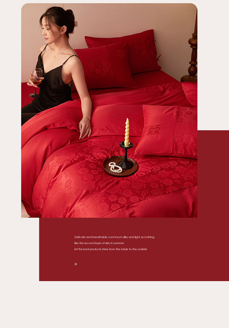 中式结婚长绒棉四件套提花红色床单被套婚庆陪嫁床上用品包邮一件