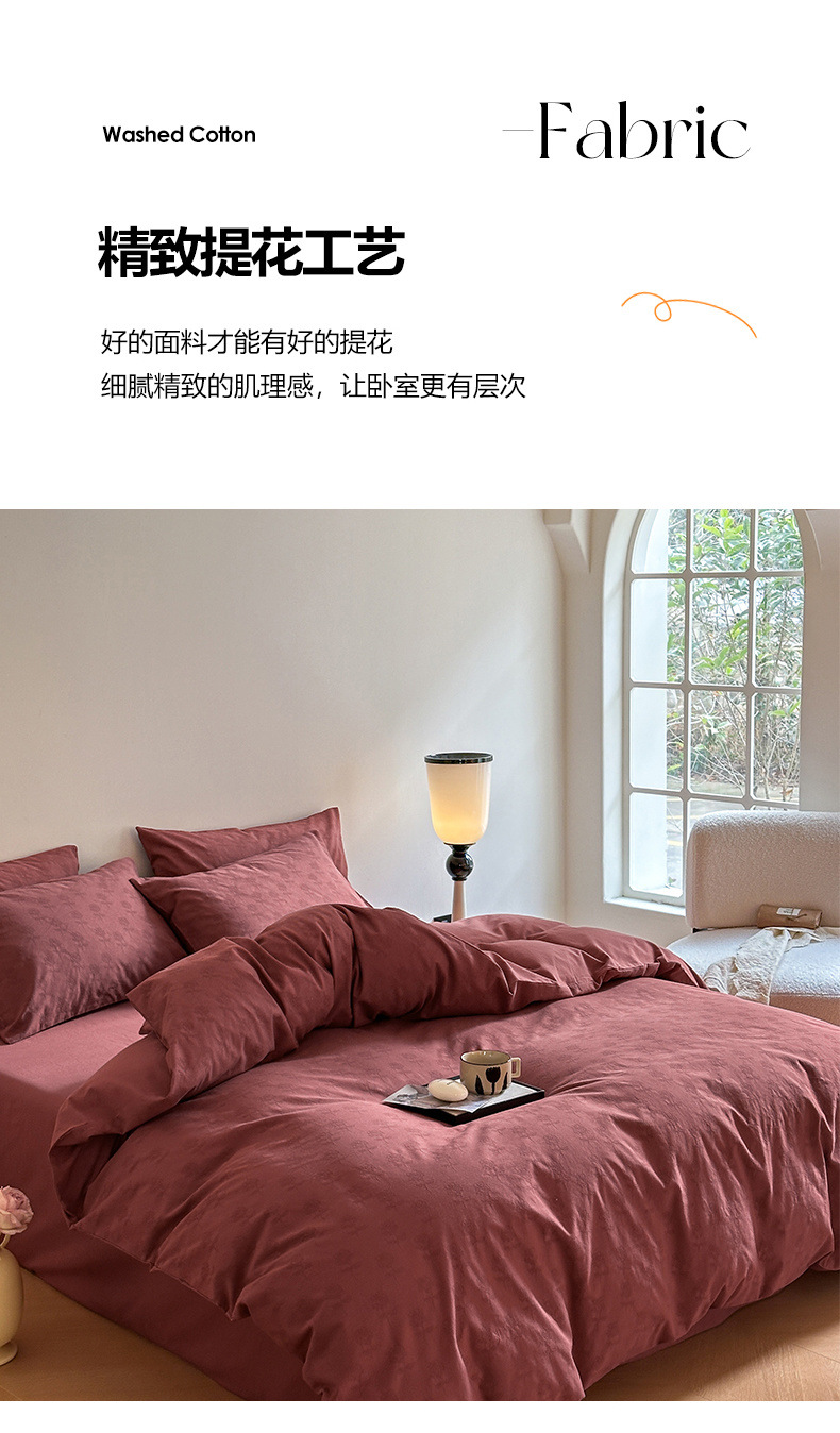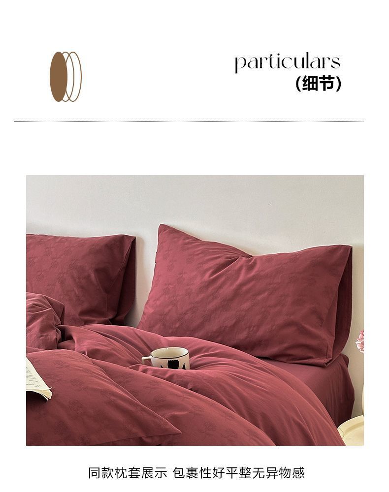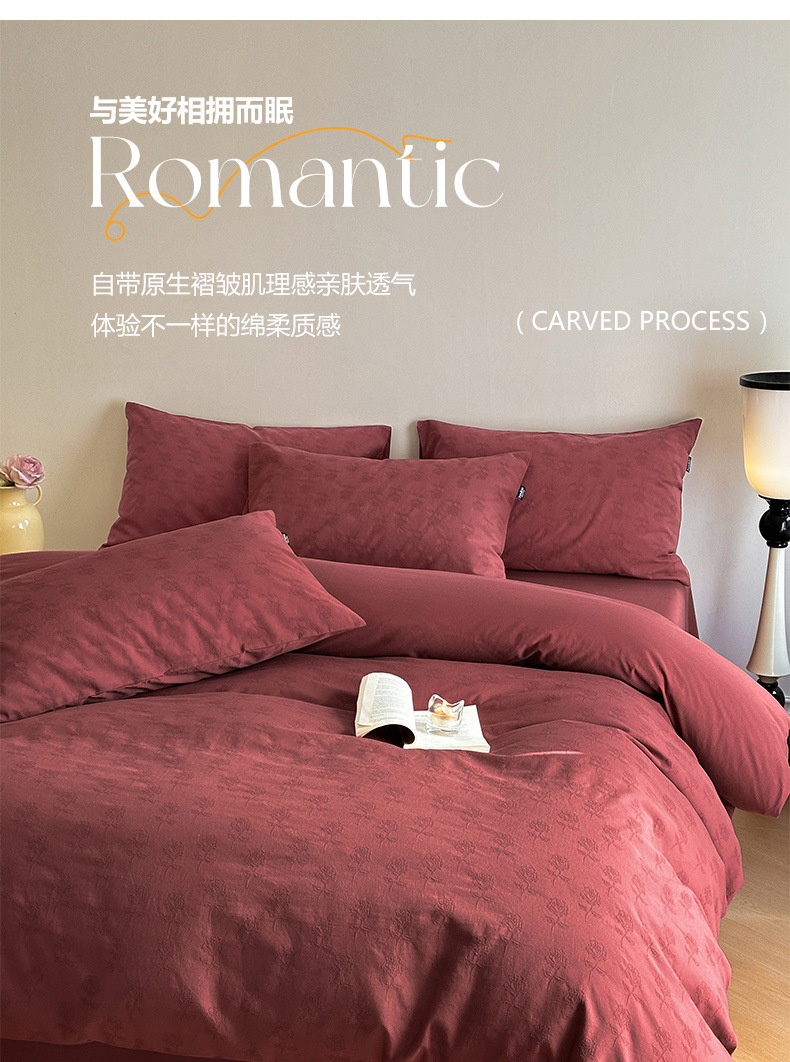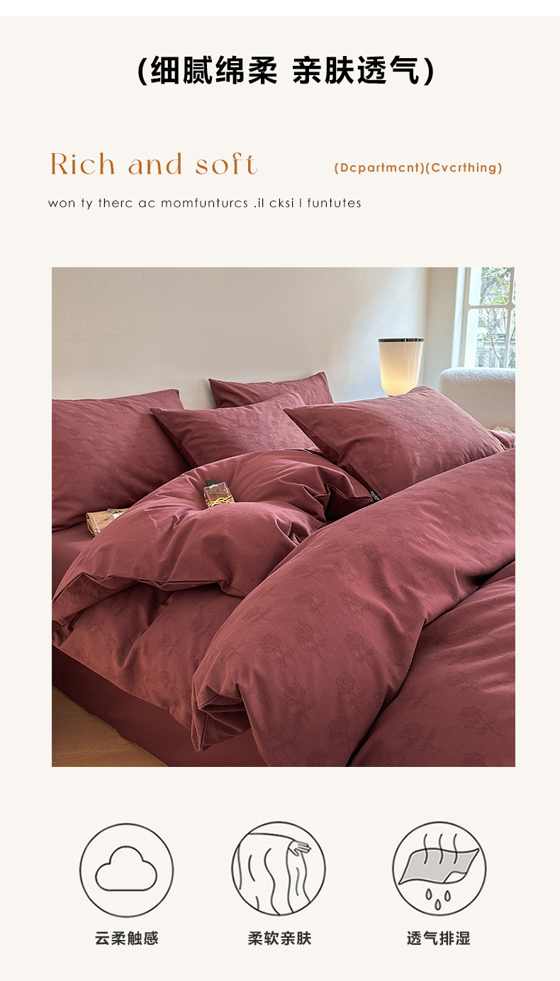 a类棉三层纱四件套轻奢婚庆提花被套酒红色床单高级感床品跨境
