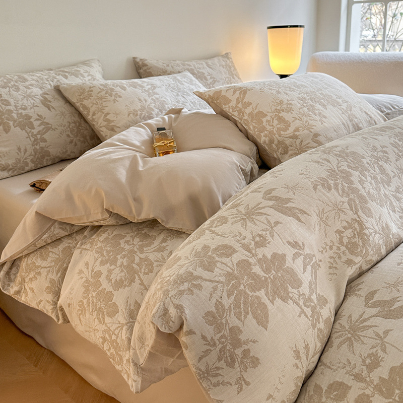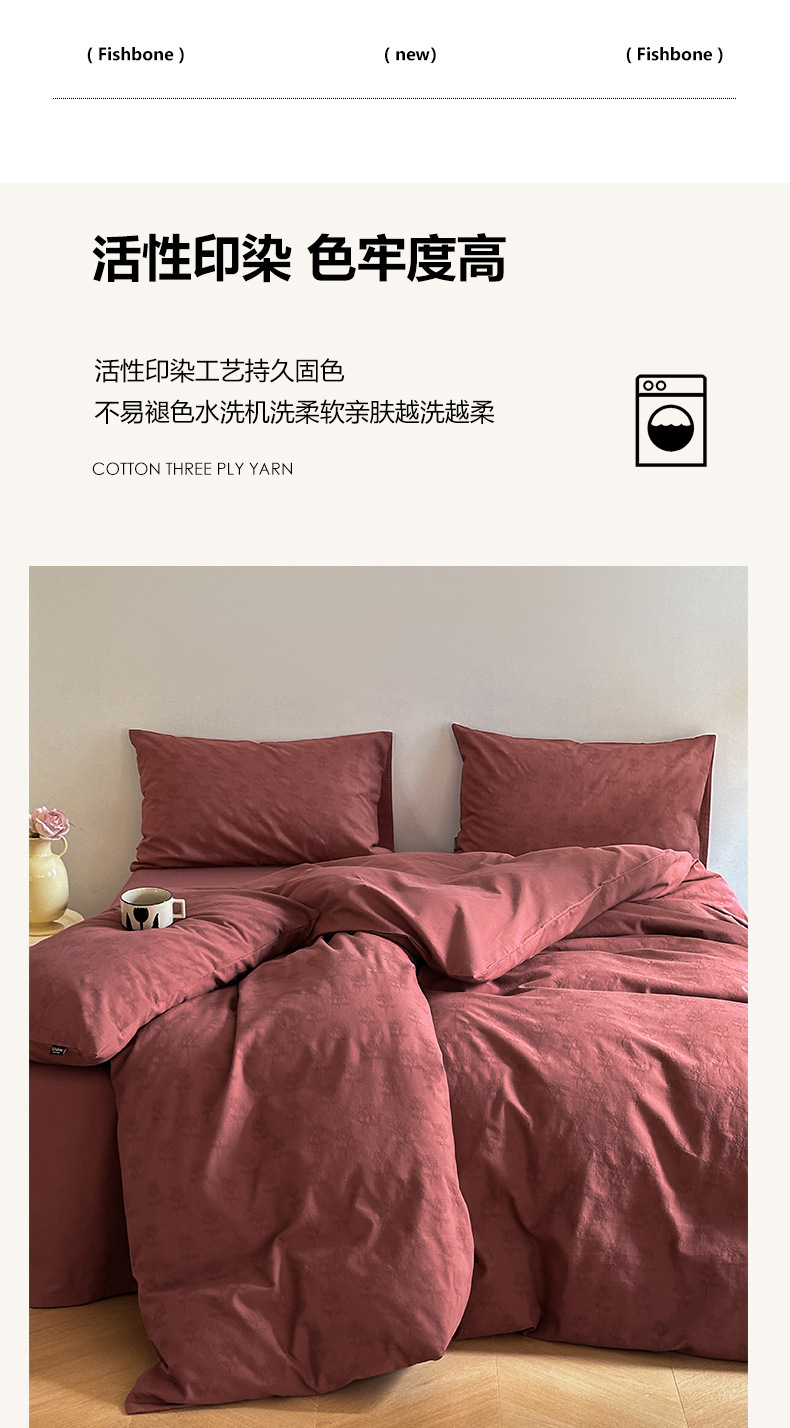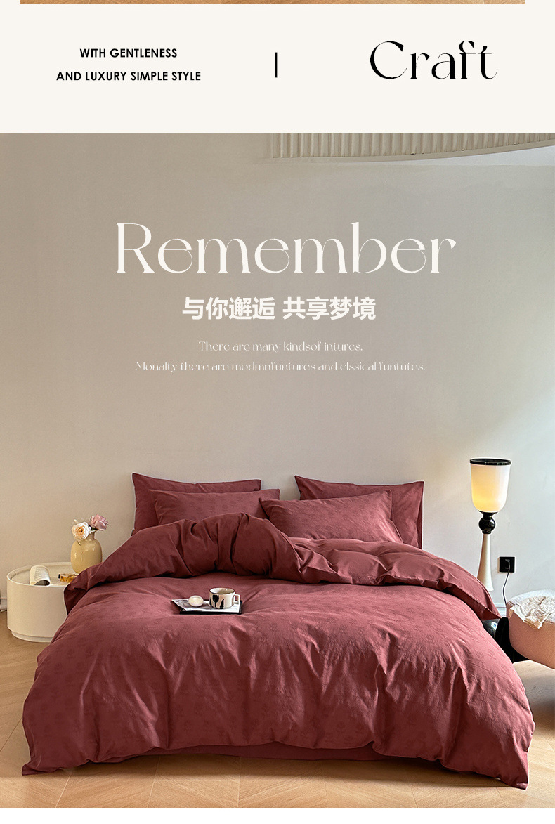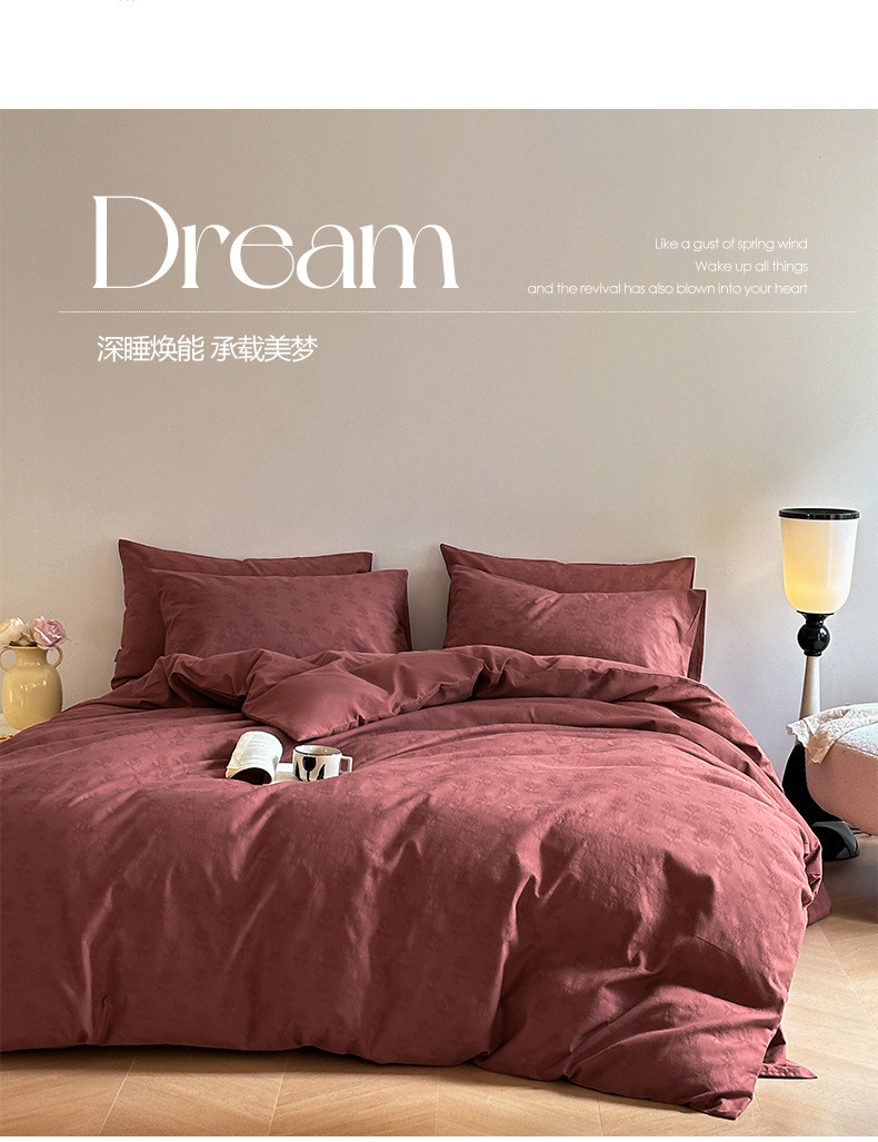 a类棉三层纱四件套轻奢婚庆提花被套酒红色床单高级感床品跨境