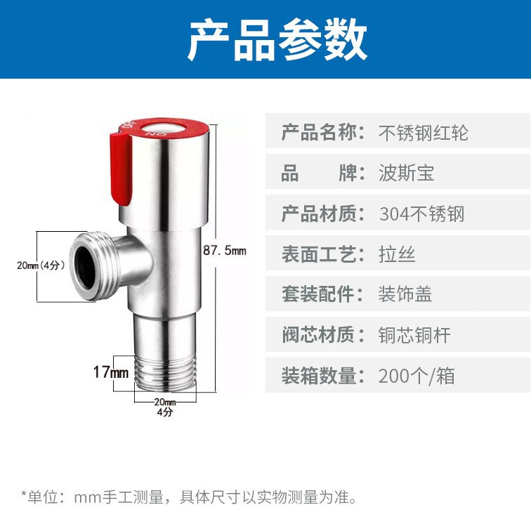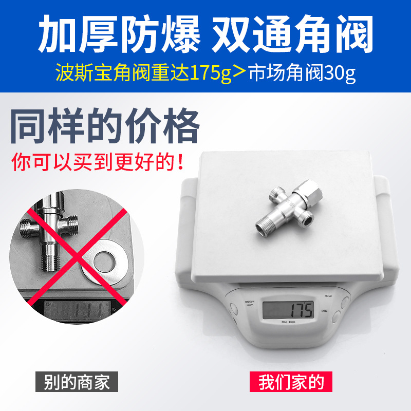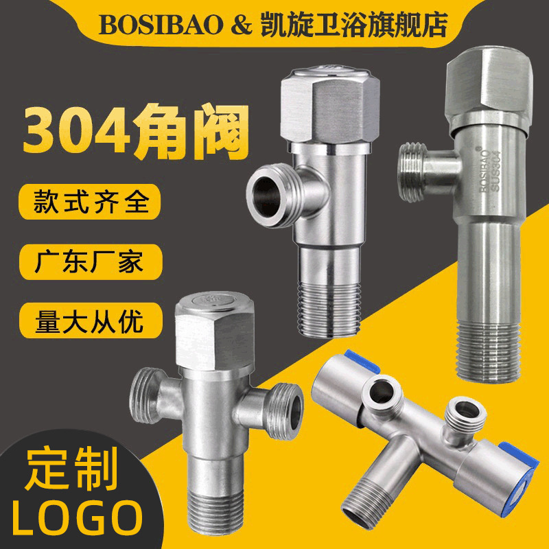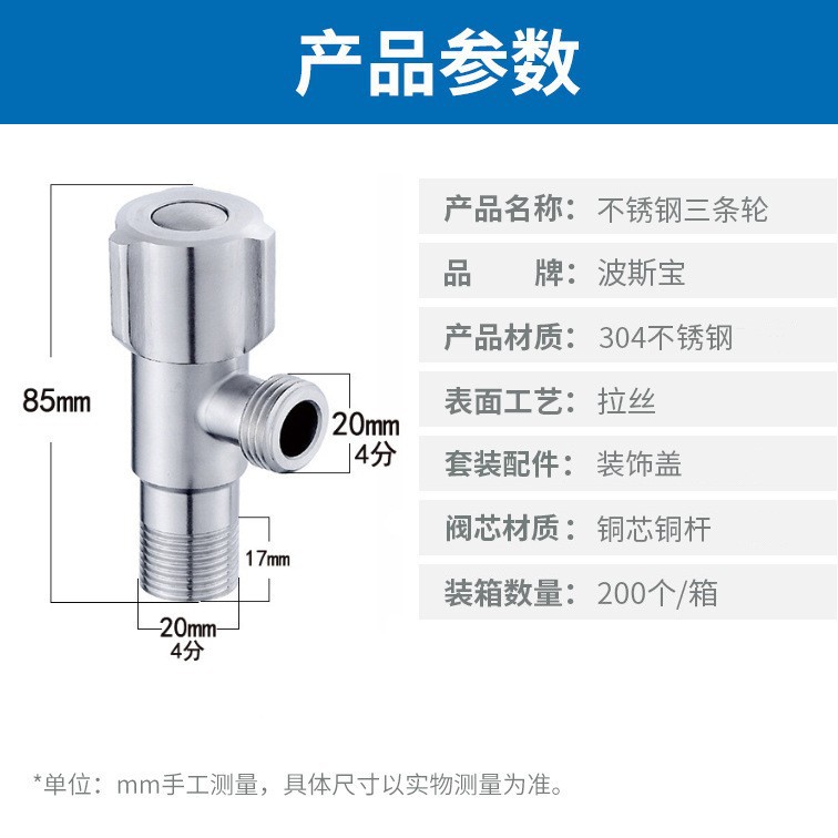 304不锈钢角阀dn15三角阀加厚防爆三通一进二出冷热水器4分管开关