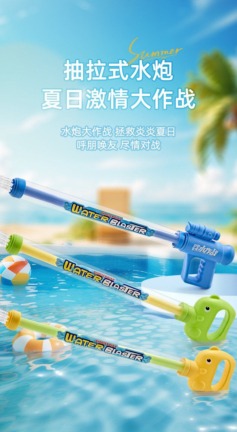 儿童打水仗神器沙滩大号喷水抽拉式水炮成人漂流水枪玩具地摊玩具