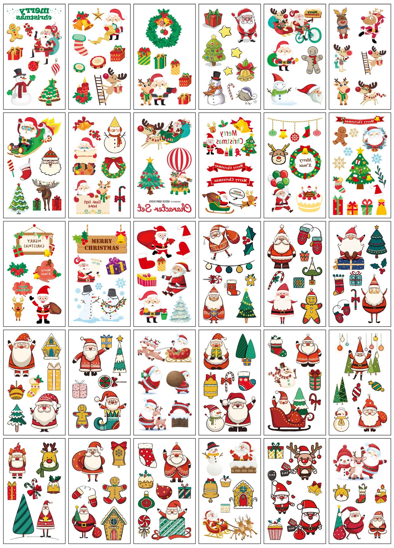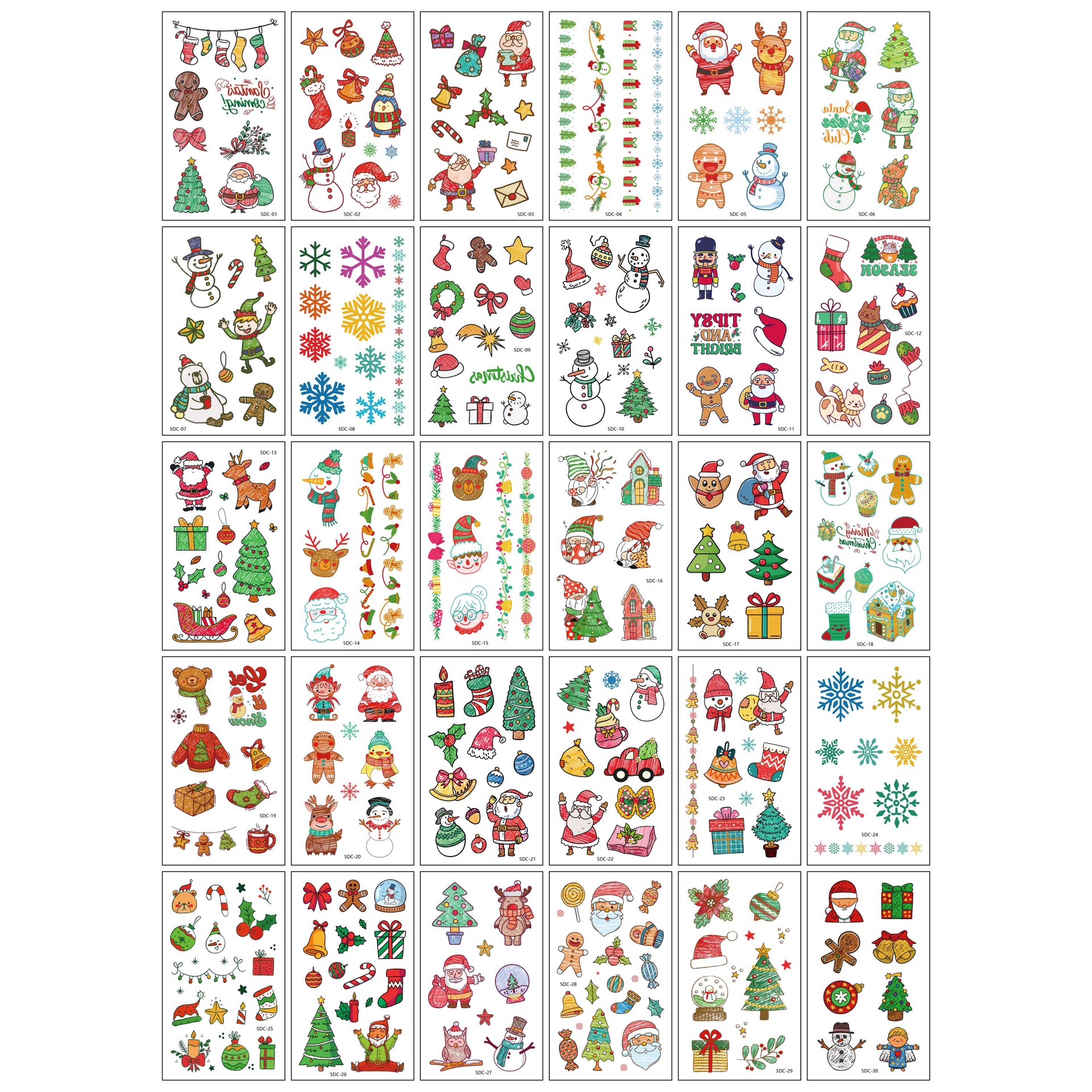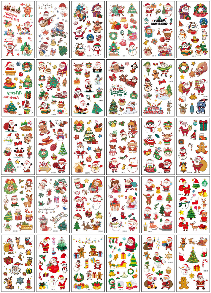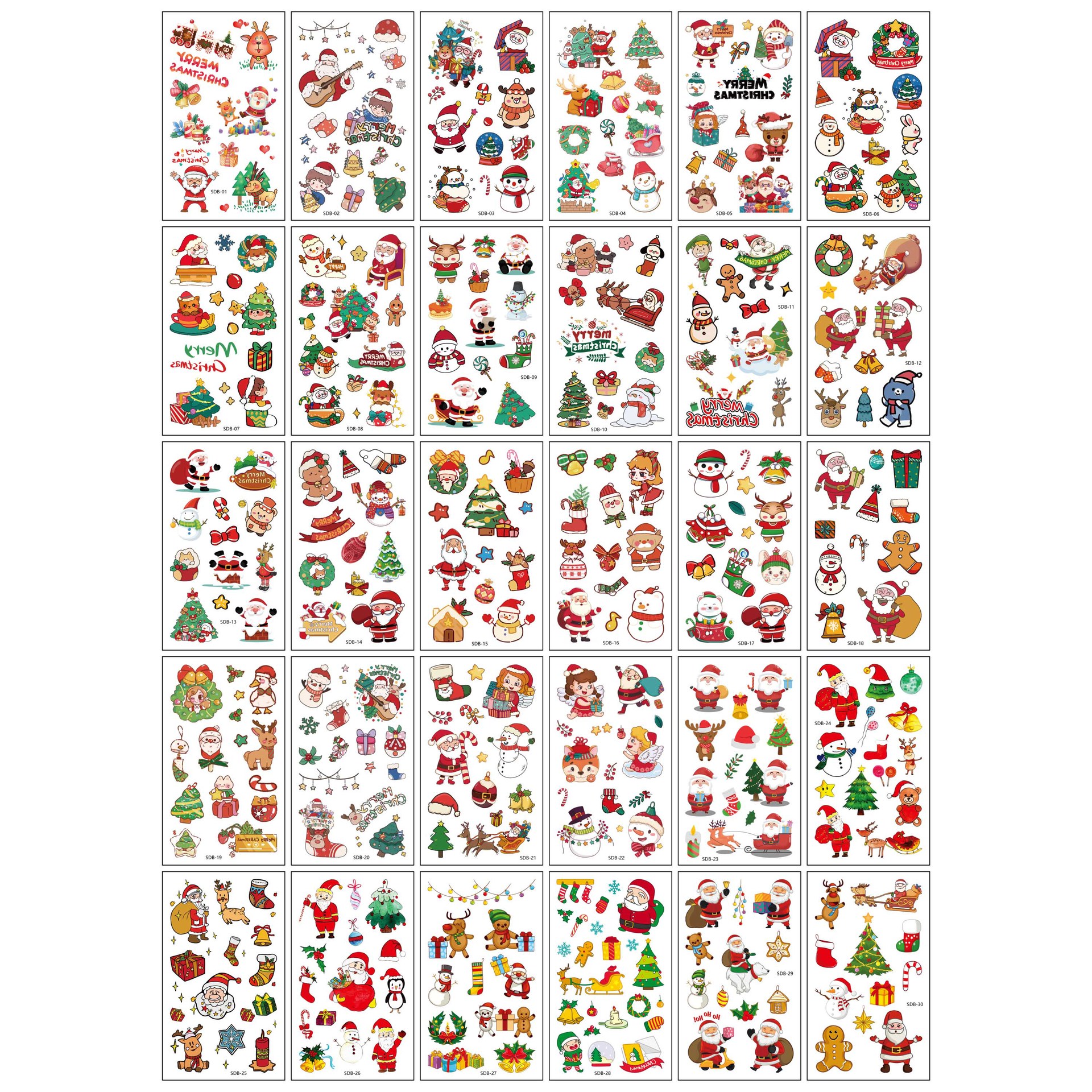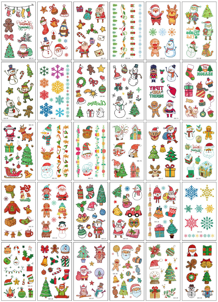 跨境新款卡通圣诞节纹身贴儿童可爱圣诞老人礼物雪人临时纹身贴纸