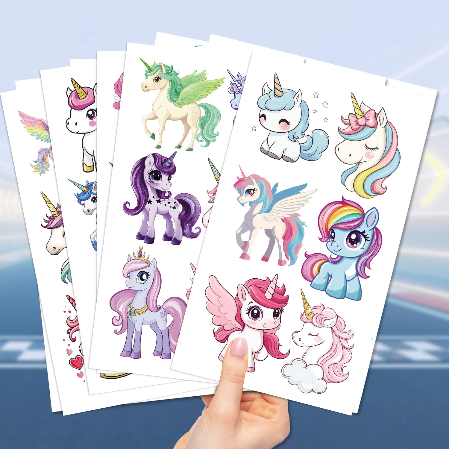 跨境新款卡通独角兽系列闪粉纹身贴防水儿童派对聚会礼品搞怪趣味