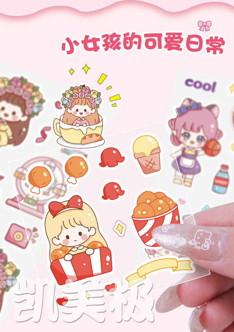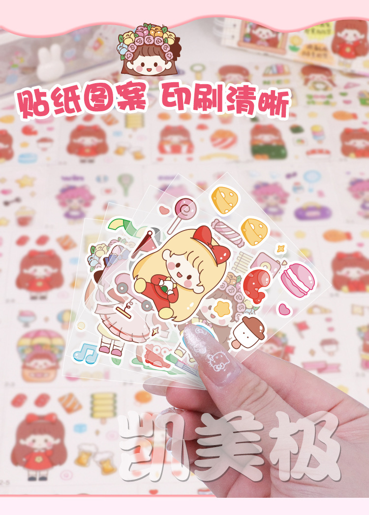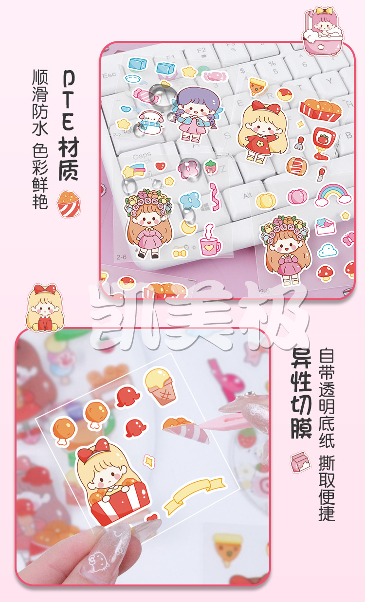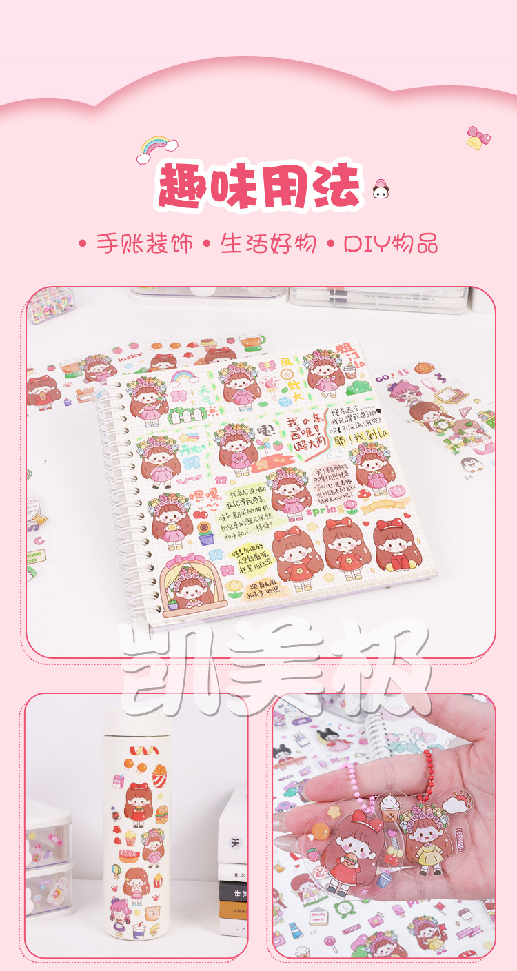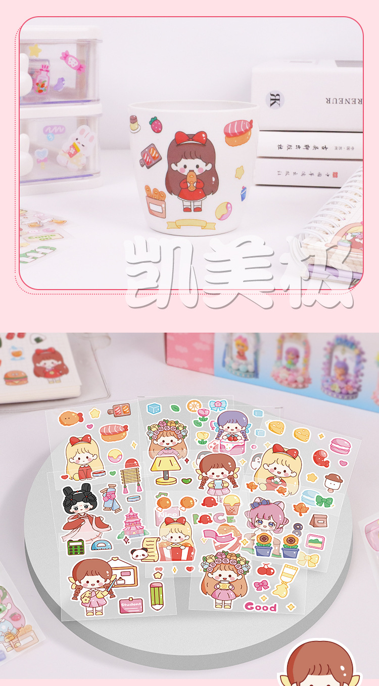 可爱女孩贴纸卡通手帐PET贴纸防水贴纸咕卡贴纸儿童水杯贴画笔筒