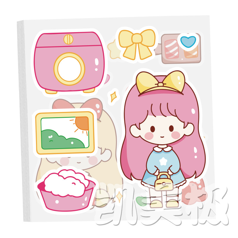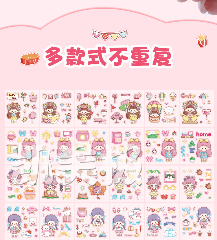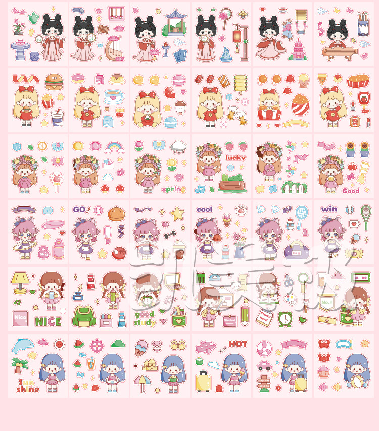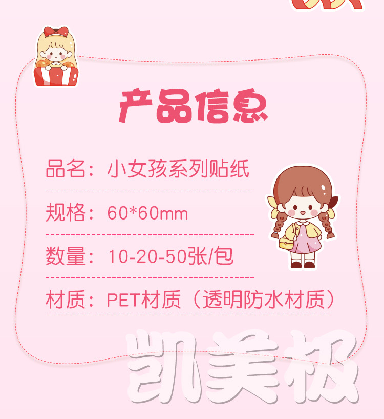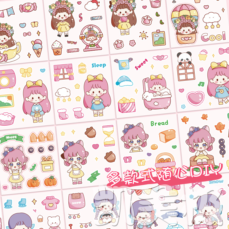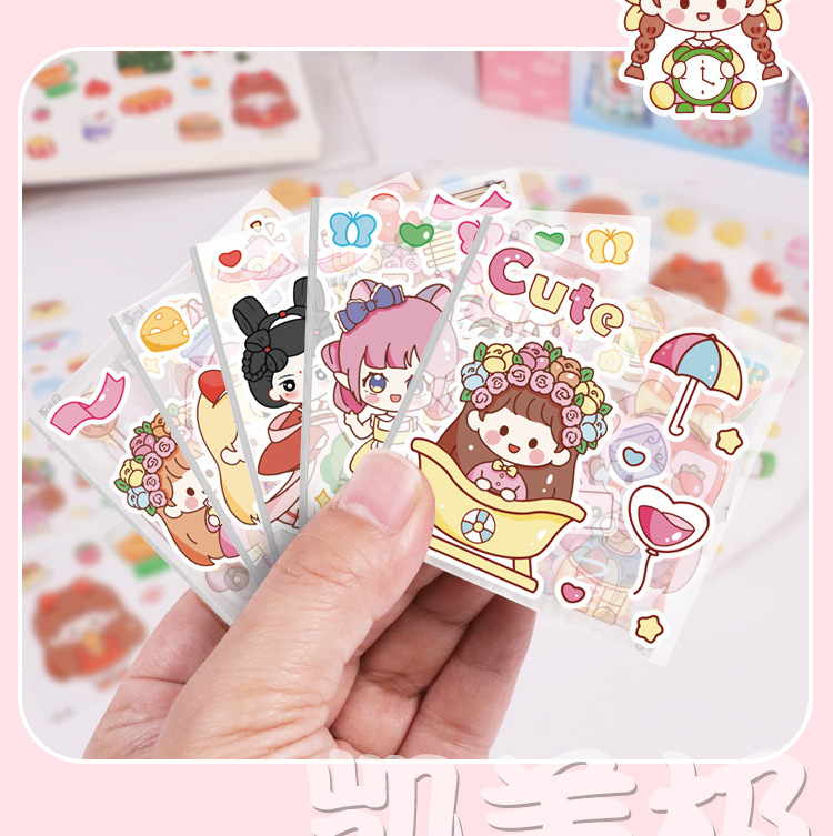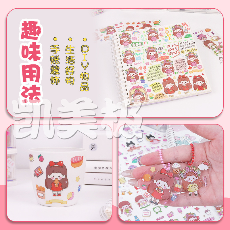 可爱女孩贴纸卡通手帐PET贴纸防水贴纸咕卡贴纸儿童水杯贴画笔筒