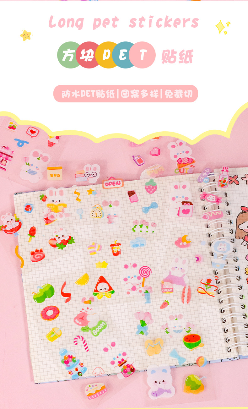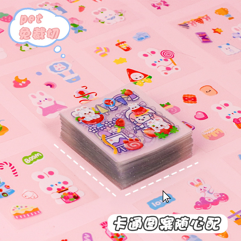 100张不重复pet贴纸卡通可爱少女DIY手账贴纸装饰素材日韩ins风