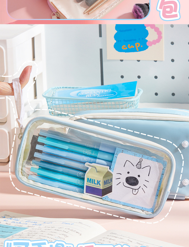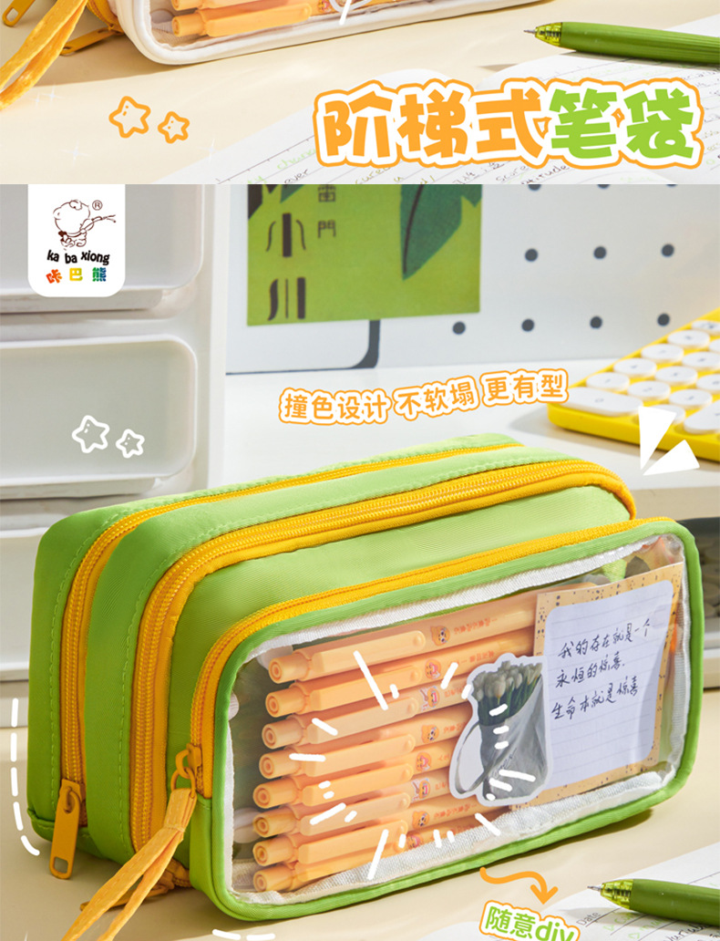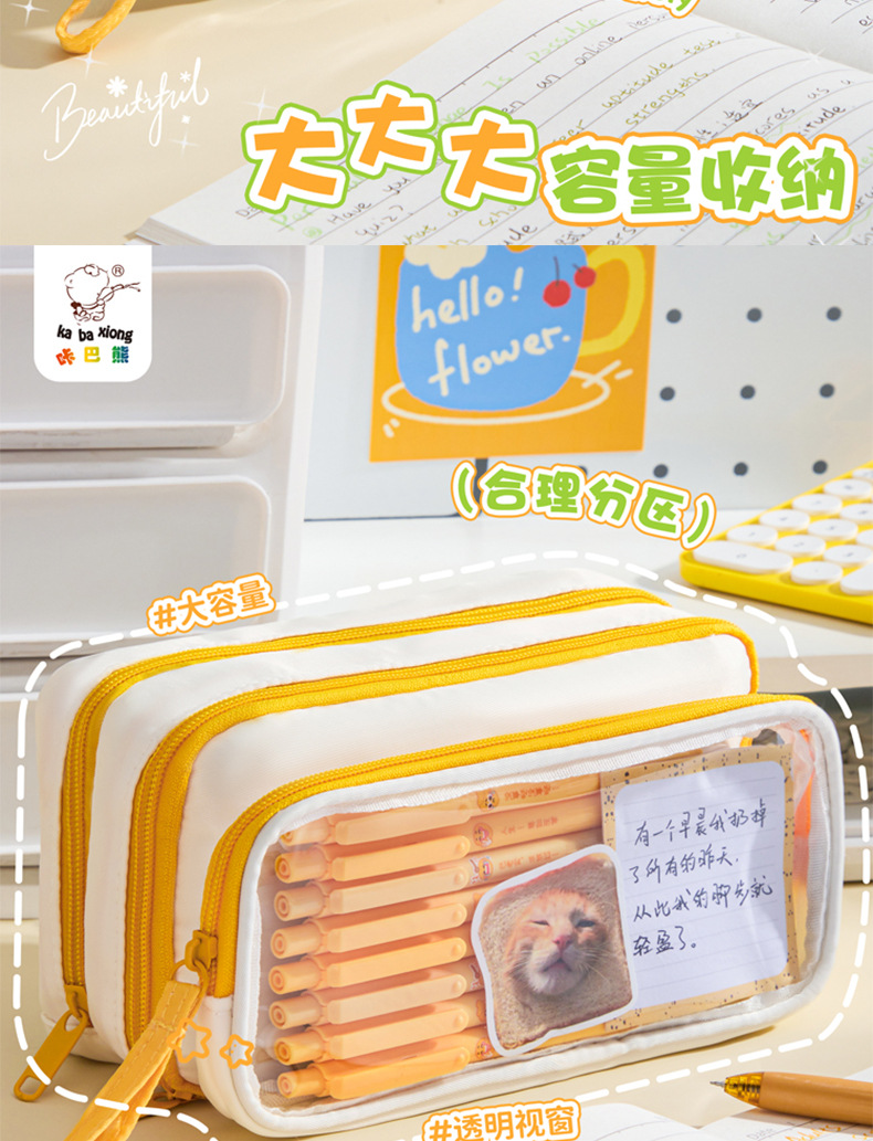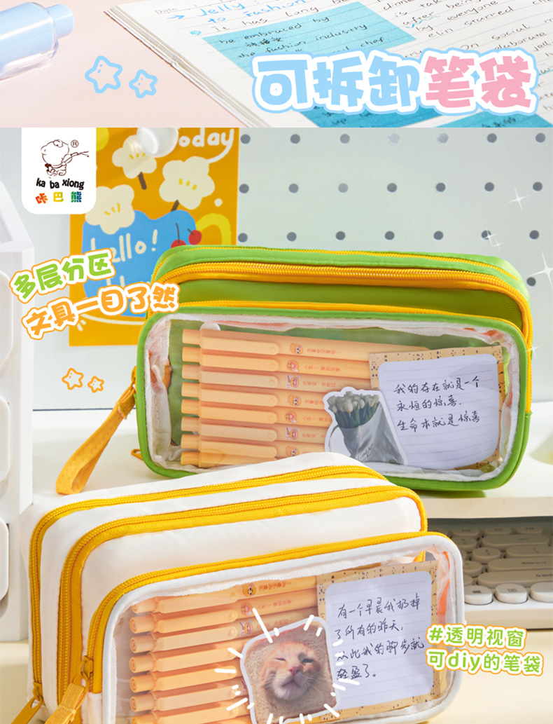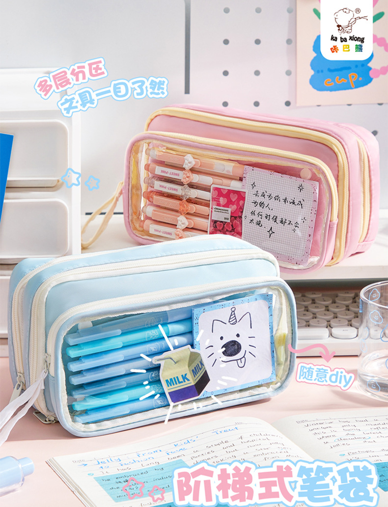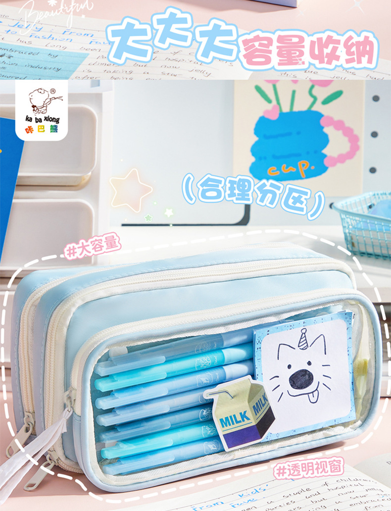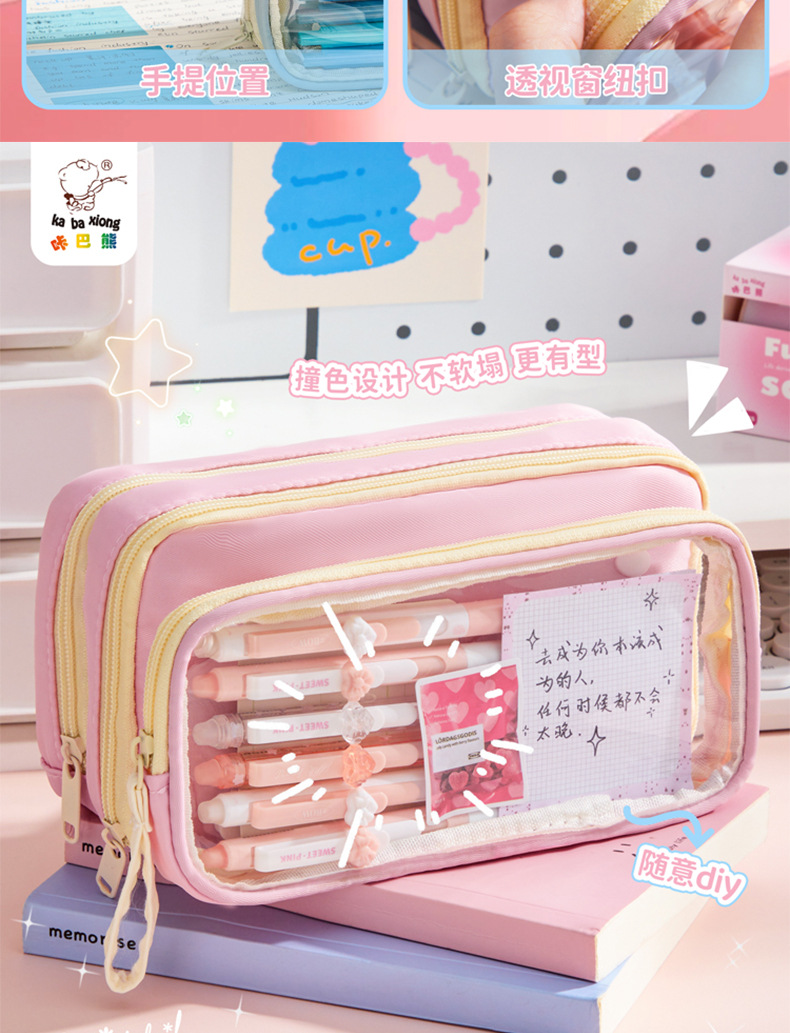 咔巴熊透明笔袋ins风大容量高颜值简约韩版多功能初中小学生收纳