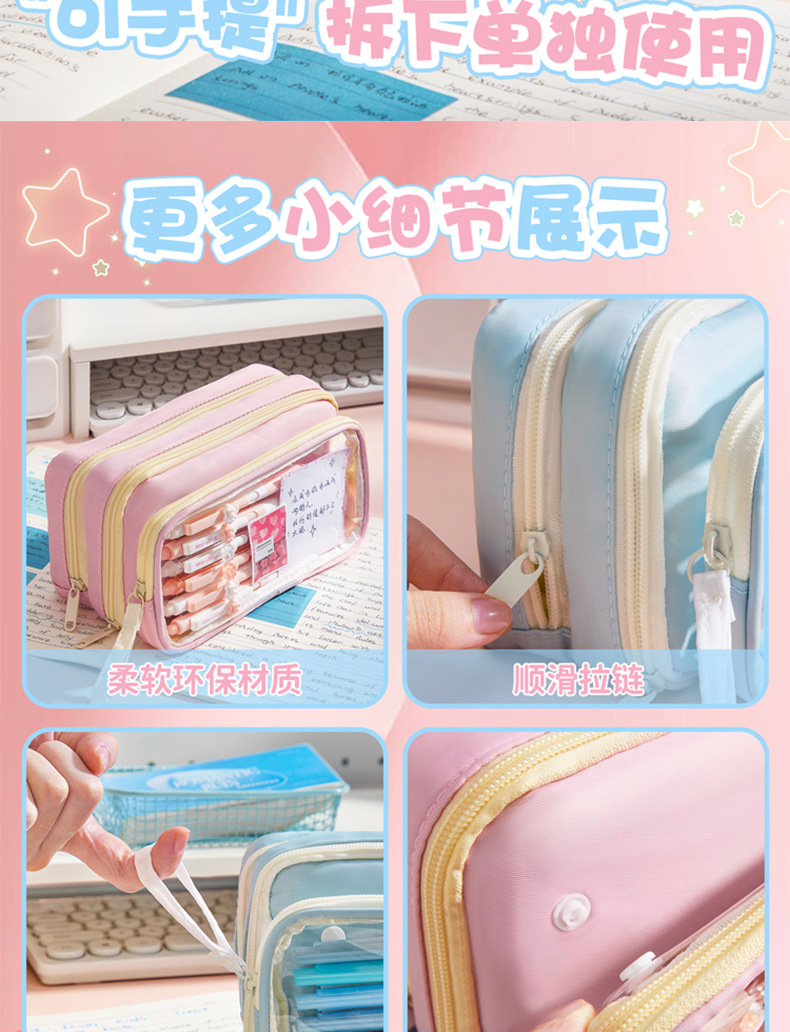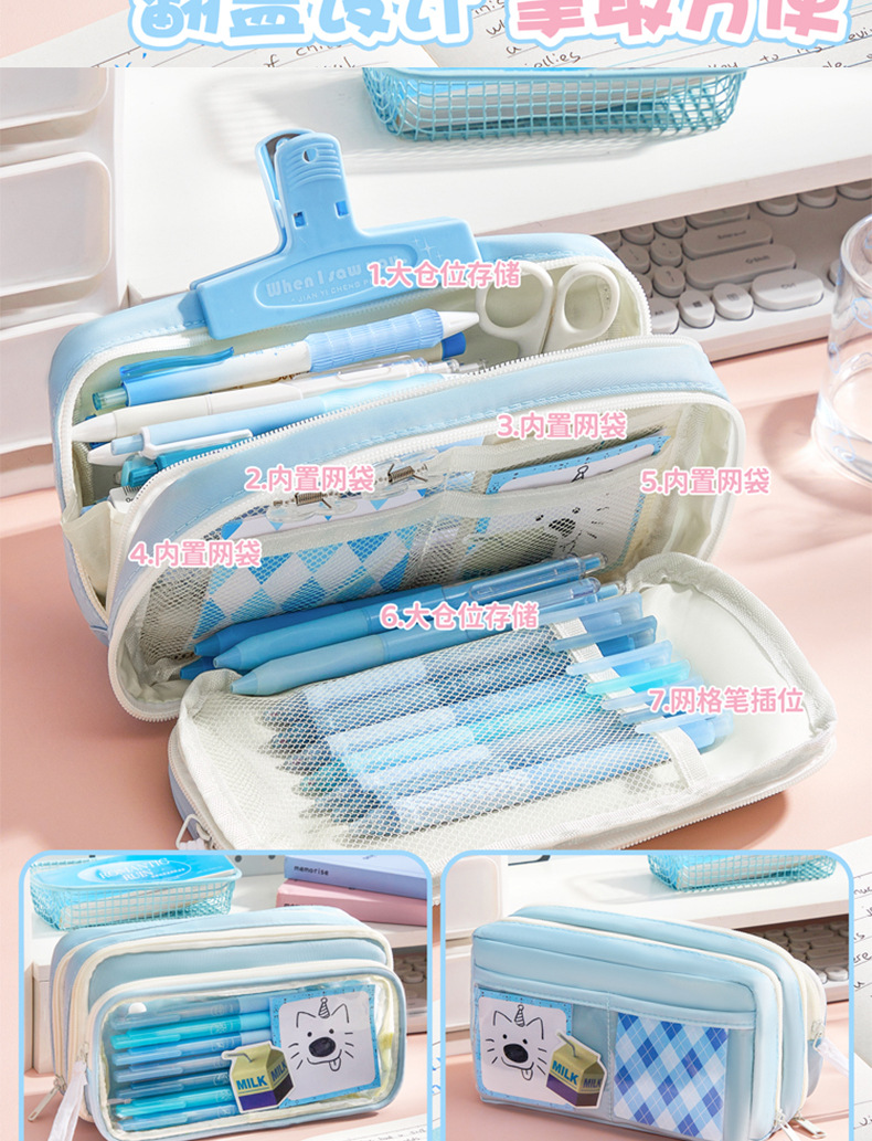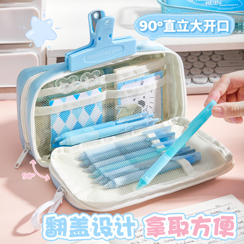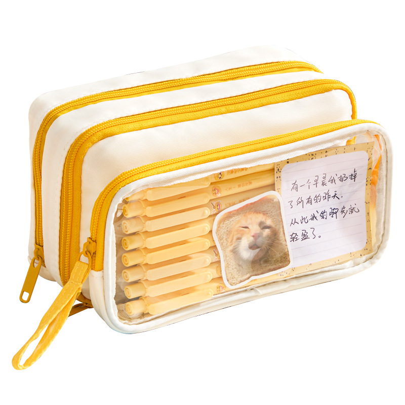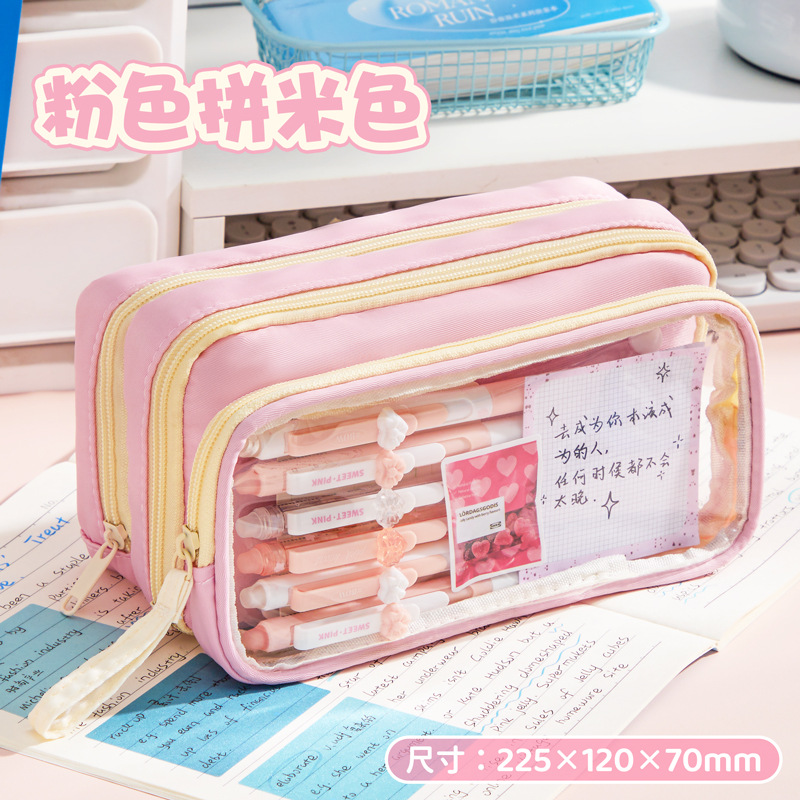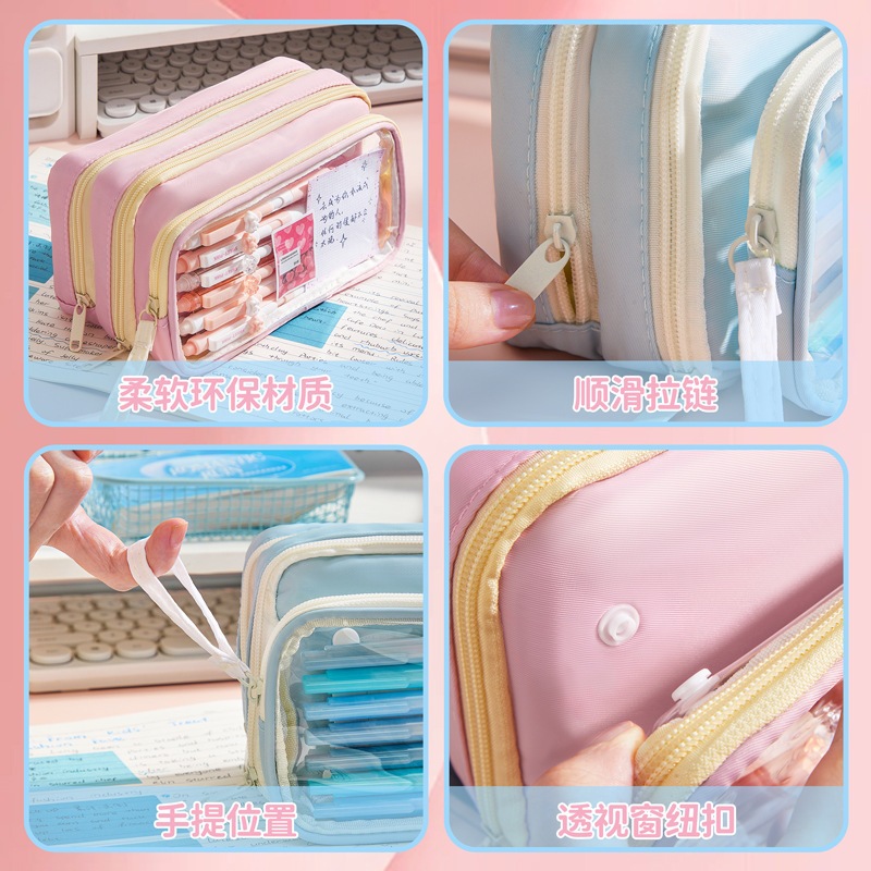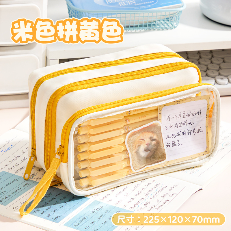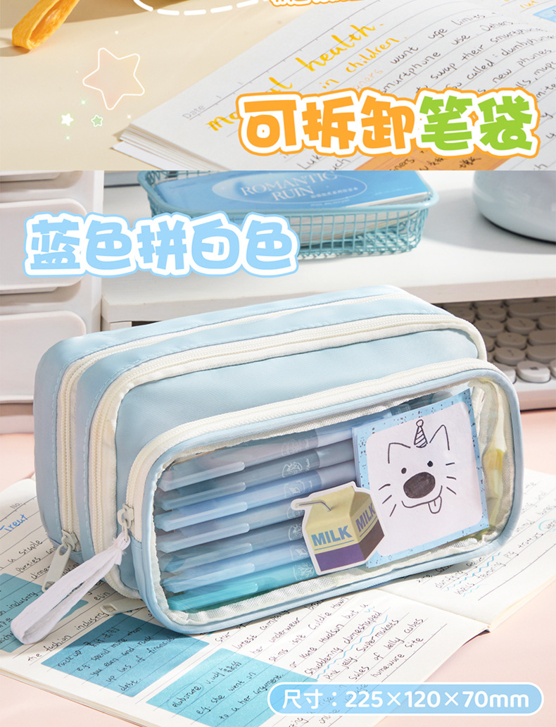 咔巴熊透明笔袋ins风大容量高颜值简约韩版多功能初中小学生收纳