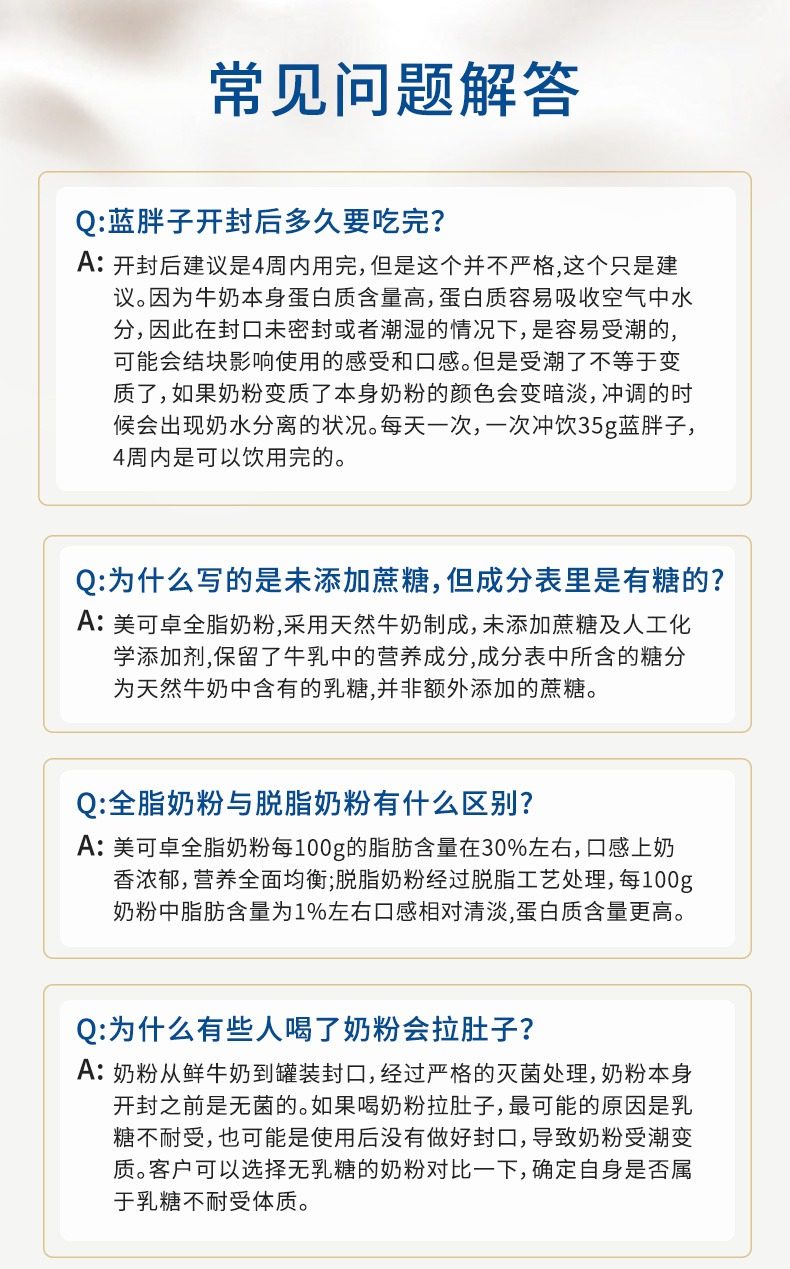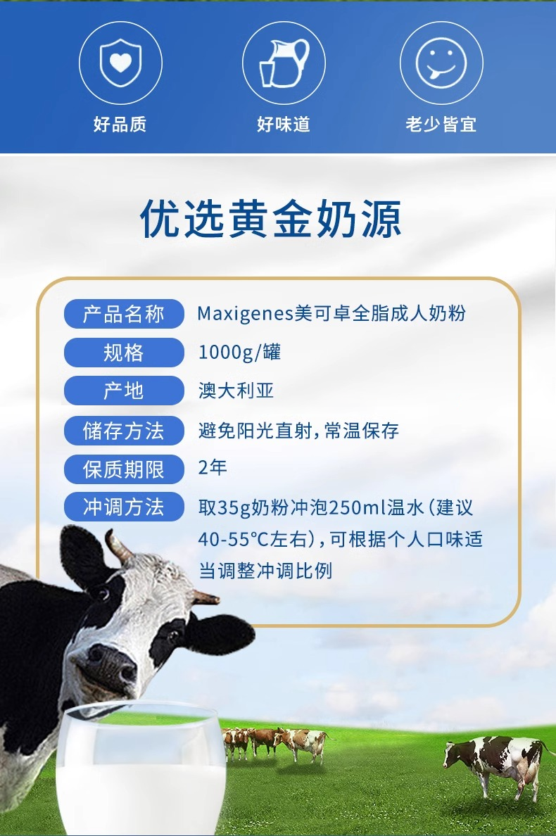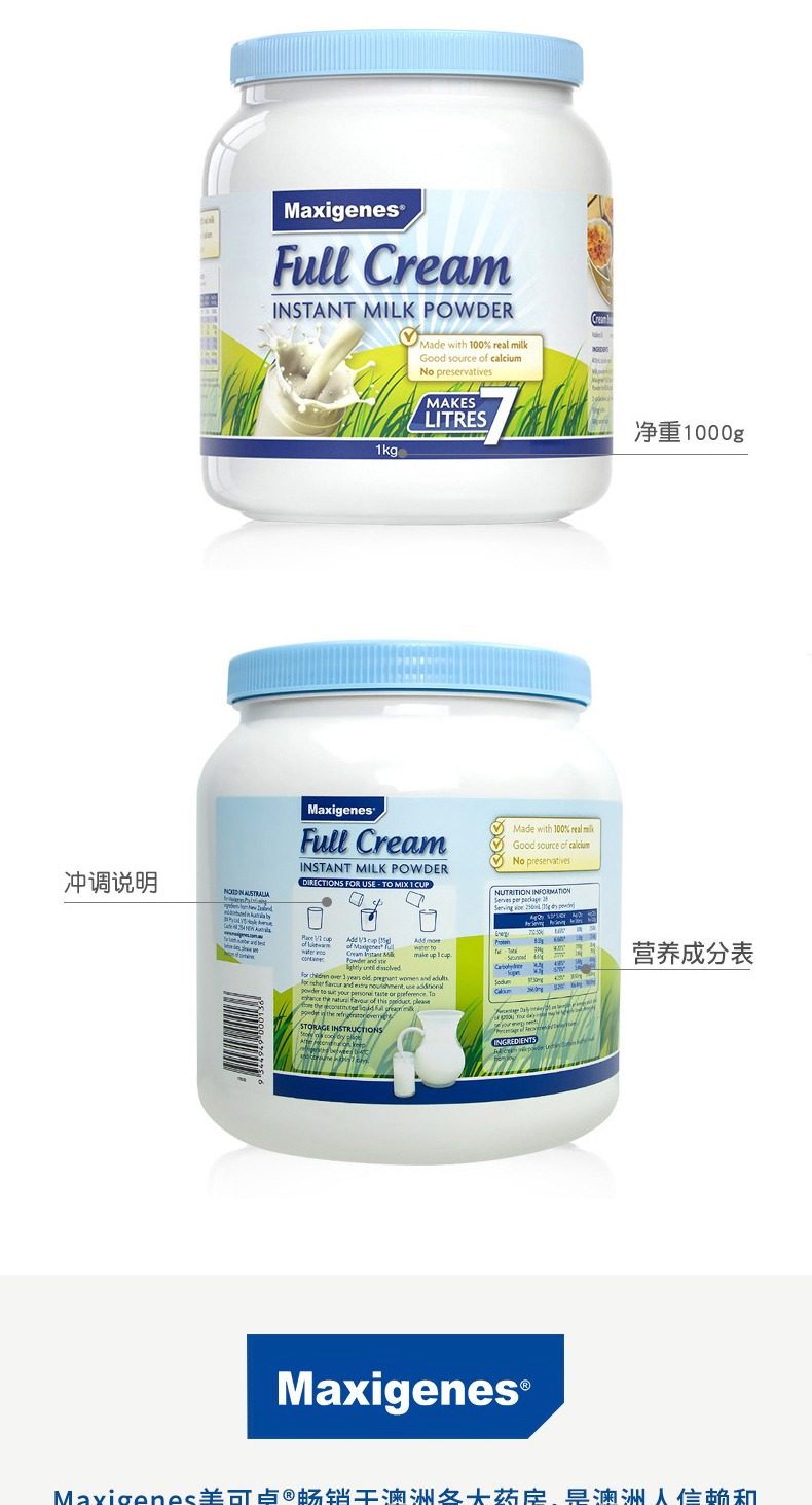 美可卓蓝胖子成人全脂脱脂牛奶粉1kg